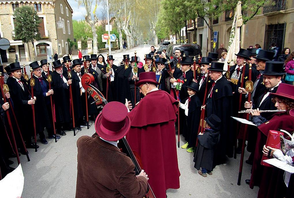 Sant Julià de Vilatorta (Barcelona) performs the oldest documented caramelles in Catalonia. These songs originated at the end of the sixteenth century with the song of The Joys, sung by the brotherhood officially established in 1592. Indeed, the initial intention was to pay homage to the Virgen del Roser, but it became an Easter town custom over the years. In Sant Julià de Vilatorta, the original has endured, which, thanks to the clothing, the instrumental accompaniment and popular music very much its own style, added to the fact that it has been