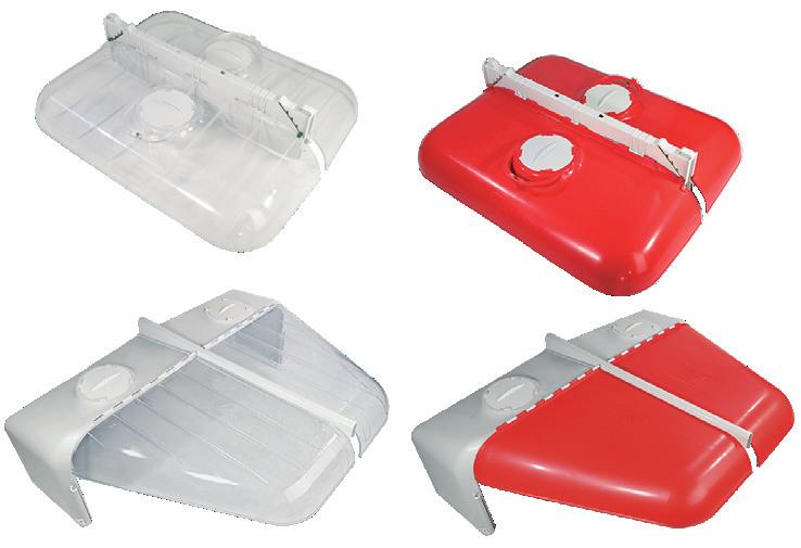 Its function is to connect the silo with the transfer unit and allow it to be closed. They can be single, for one transfer unit (made of injected plastic and available with a wall of 45º for granules and 60º for flour), or double (made of plastic or fibreglass) for two transfer units. The cone and the closing squeegee allow the exit of the transfer units to be at 30º or horizontal, depending on which direction they are connected.