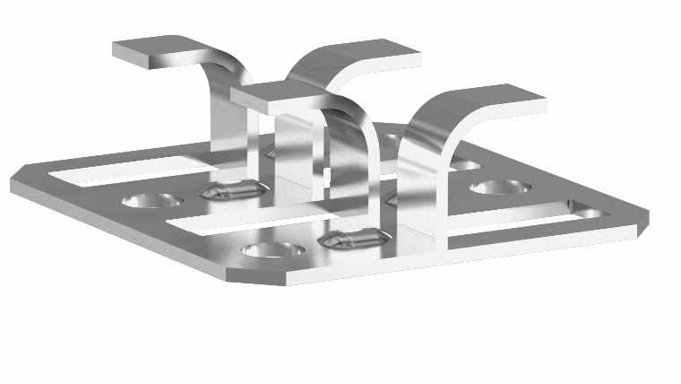 Structural fastenings for main beams, secondary beams and insulation assemblies.