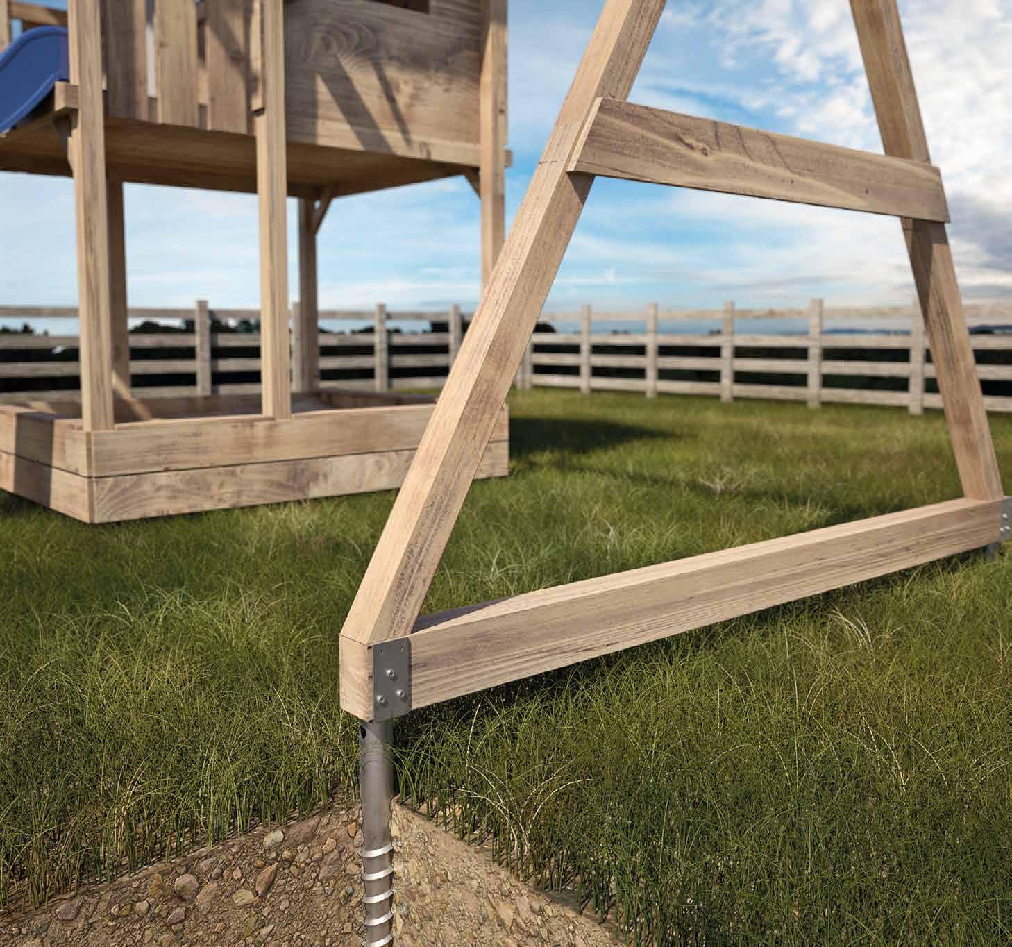 Connecteurs et pieds de poteau pour clôtures en bois stables, modulaires et résistantes aux agents externes.