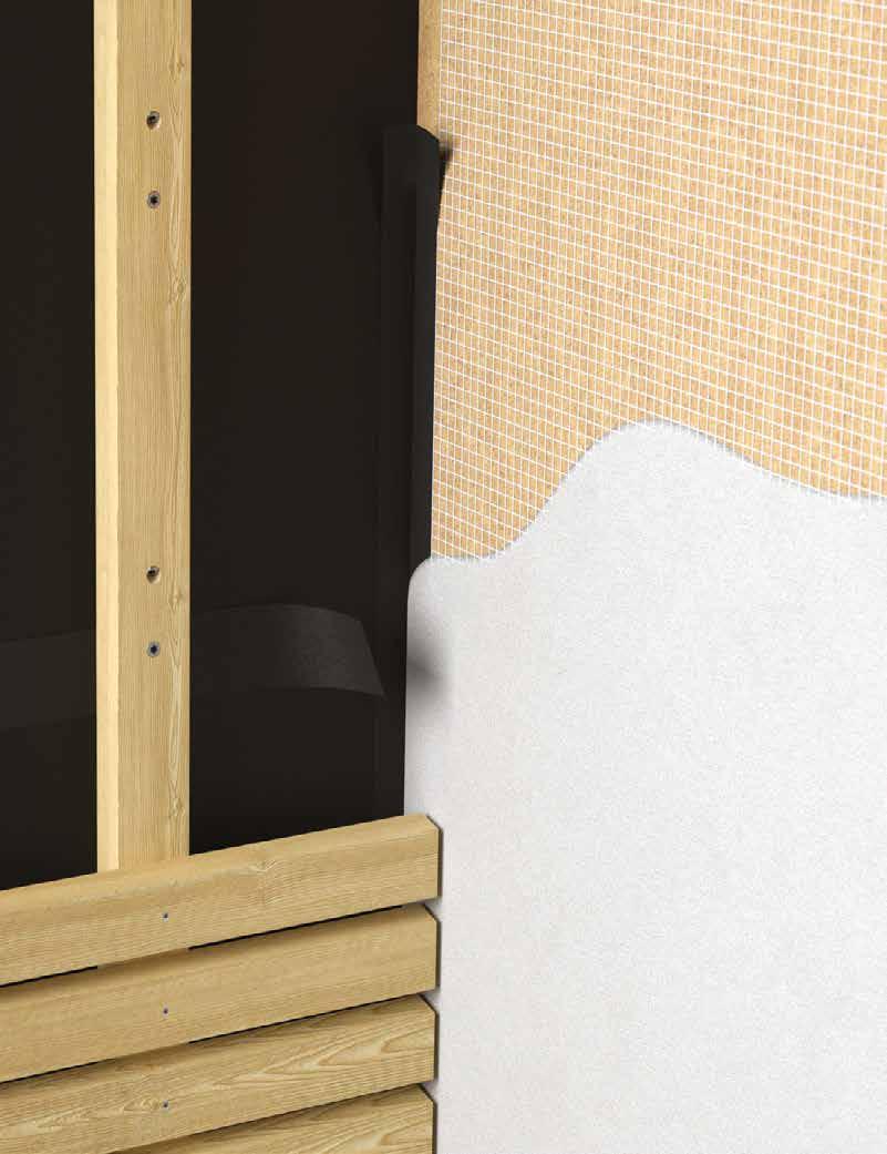 Solutions pour l’étanchéité à l’air, à l’eau et au vent dans les nœuds entre menuiserie et structure, compatibles avec des systèmes de construction en bois.