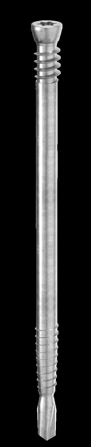 El bajo cabeza troncocónico genera un efecto de encastre con el agujero circular de la placa y garantiza un excelente rendimiento estático. La geometría sin aristas de la cabeza reduce los puntos de concentración del esfuerzo y da robustez al tornillo.