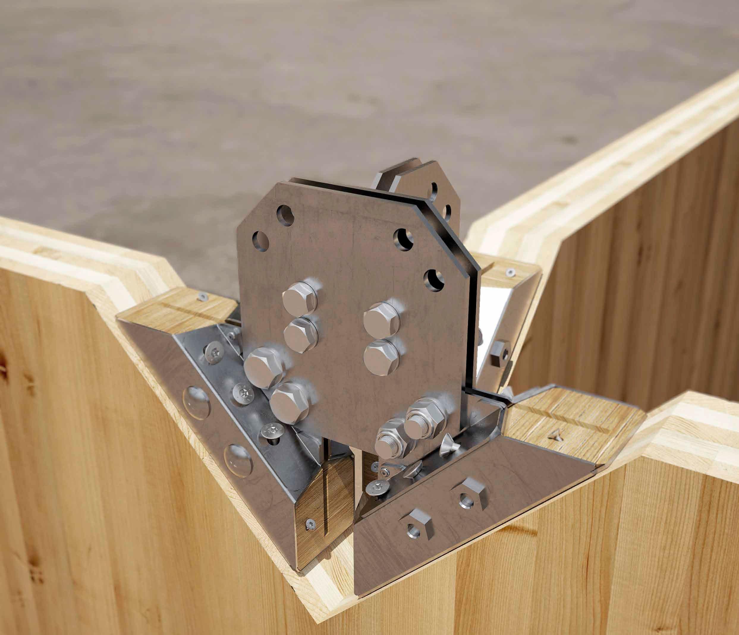 Permite realizar conexiones entre paneles de CLT con resistencia y rigidez excepcionales para solicitaciones de corte, momento de flexión y fuerza axial Es el complemento natural de los sistemas SPIDER y PILLAR