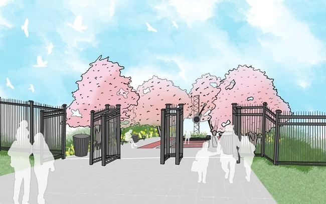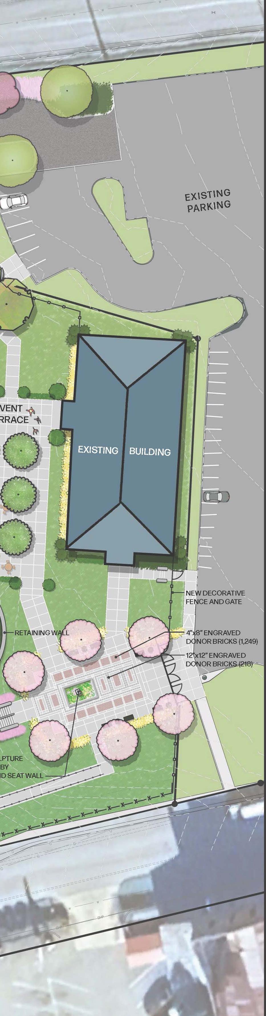 Whether attending a specific event or just coming to spend a day at the park, most visitors will enter through the main plaza and courtyard. Walking through the decorative gates, visitors will encounter a sculpture honoring Reverend Brown’s legacy in a courtyard surrounded by colorful plantings, bricks honoring the music park’s donors, and benches inviting folks to sit and truly experience the space. From this plaza, people can easily access all of the park’s aspects and amenities. Whether they are entering or leaving through the plaza, the space invites people to enjoy their time here encourages them to return time and time again.