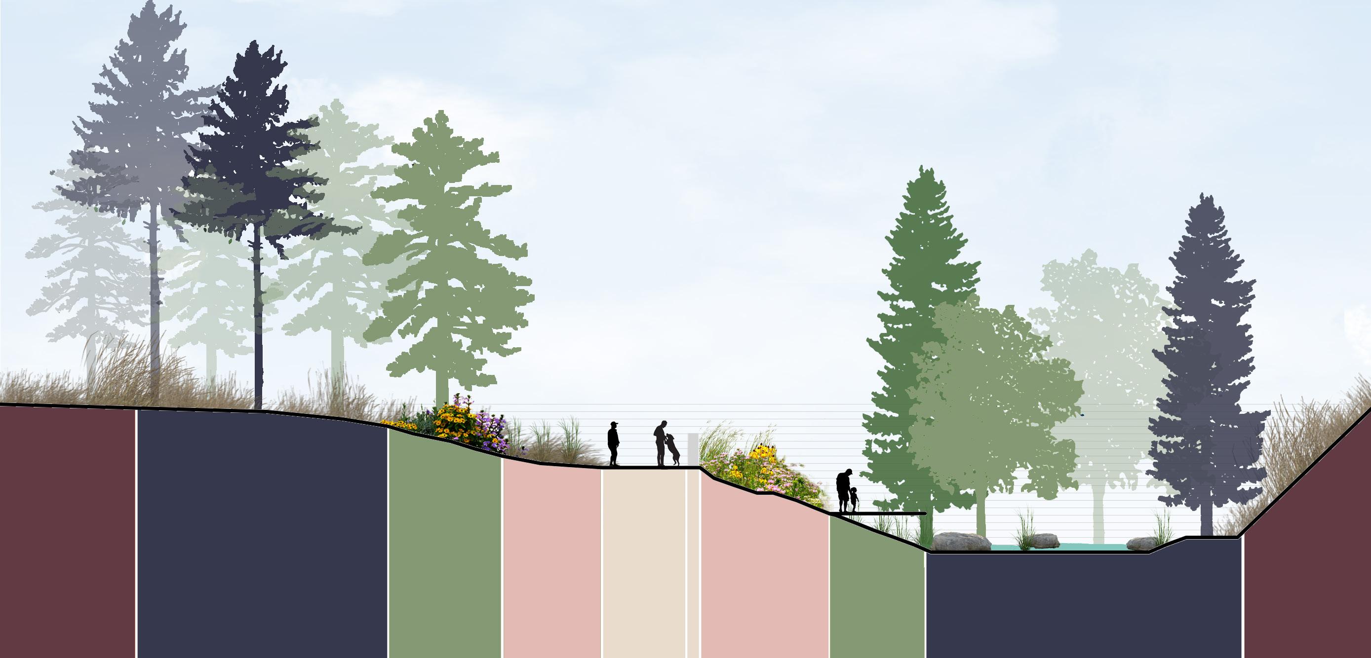 Trees Atlanta and Atlanta Beltline provided my class with six sites of future pocket parks to design as a competition. My team chose a site on the westside of Atlanta the clients hoped to turn into a pinetum. Using native plant species and local artists, we aimed to engage and educate visitors while showing the diversity of ecosystems within the Georgia Piedmont and improving ecological function of the area.