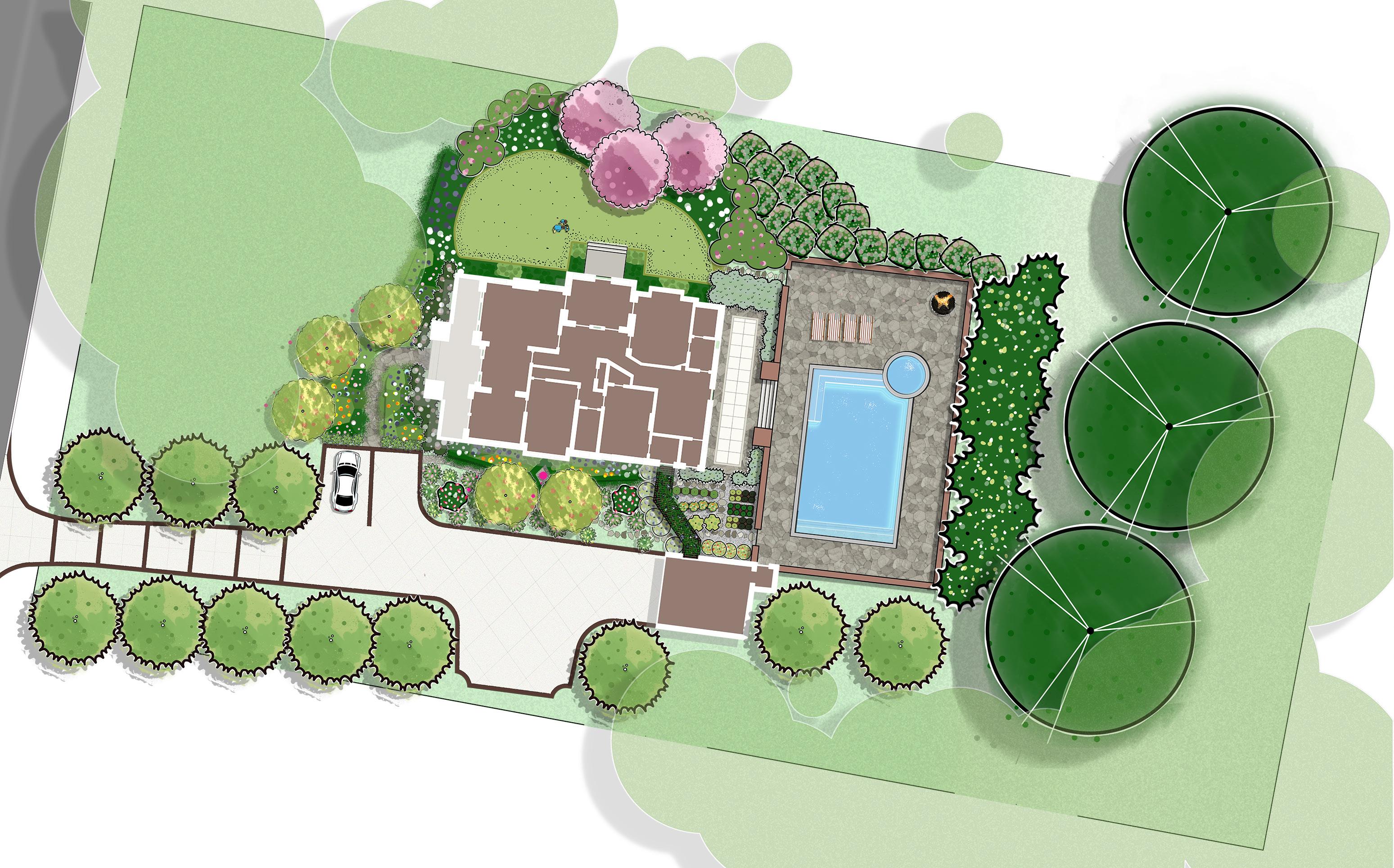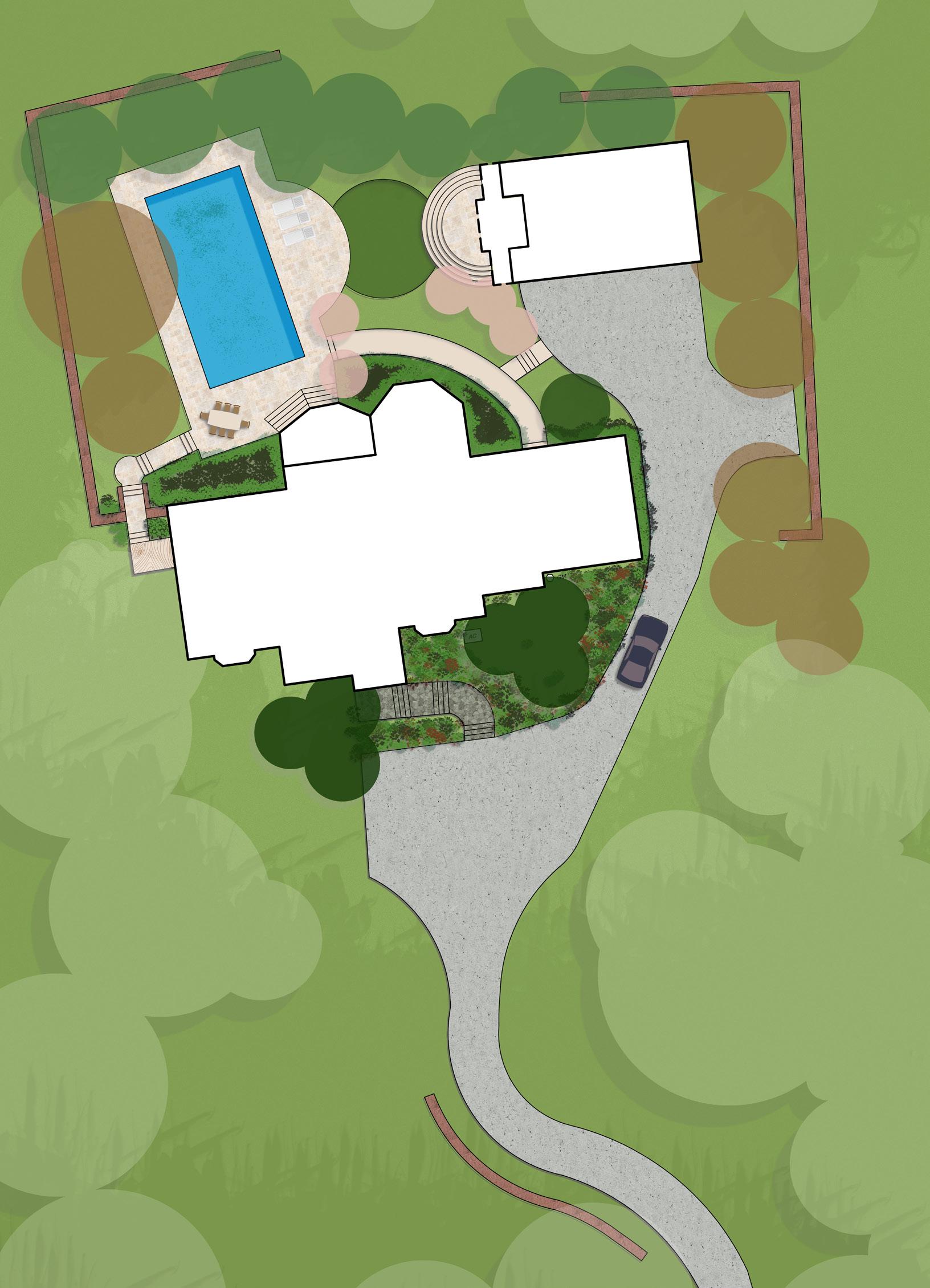 Assignment: produce a conceptual master plan and supporting design documents that will show the site’s future aesthetic character and function based on the client’s design program - including a swimming pool, spa, and lawn space for outdoor