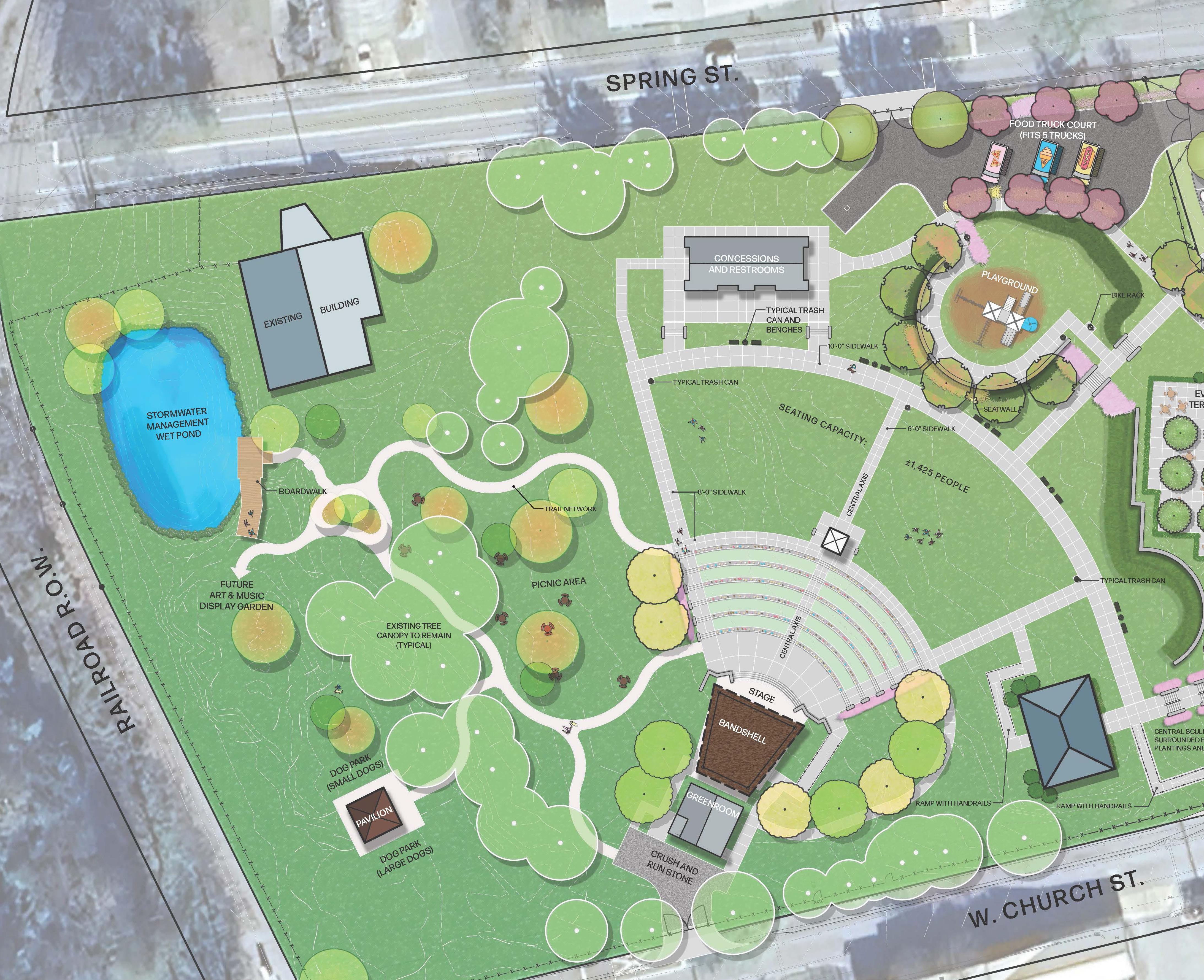 First ordained by the Friendship Baptist Church, Rev. Pearly Brown eventually decided the sidewalk would be his pulpit, using music to preach, inspire, and build community. The Rev. Pearly Brown Music Park is being constructed in his hometown of Americus, honoring his legacy by creating a functional space to celebrate music, joy, and day to day life in Sumter County, Georgia. Working under the mentorship of E. L. French, PLA and Anthony Slaughter, PE, I was a crucial member of the design team, working directly with the client, subcontractors, and donors to design a space that emulates the spirit of Rev. Pearly Brown.