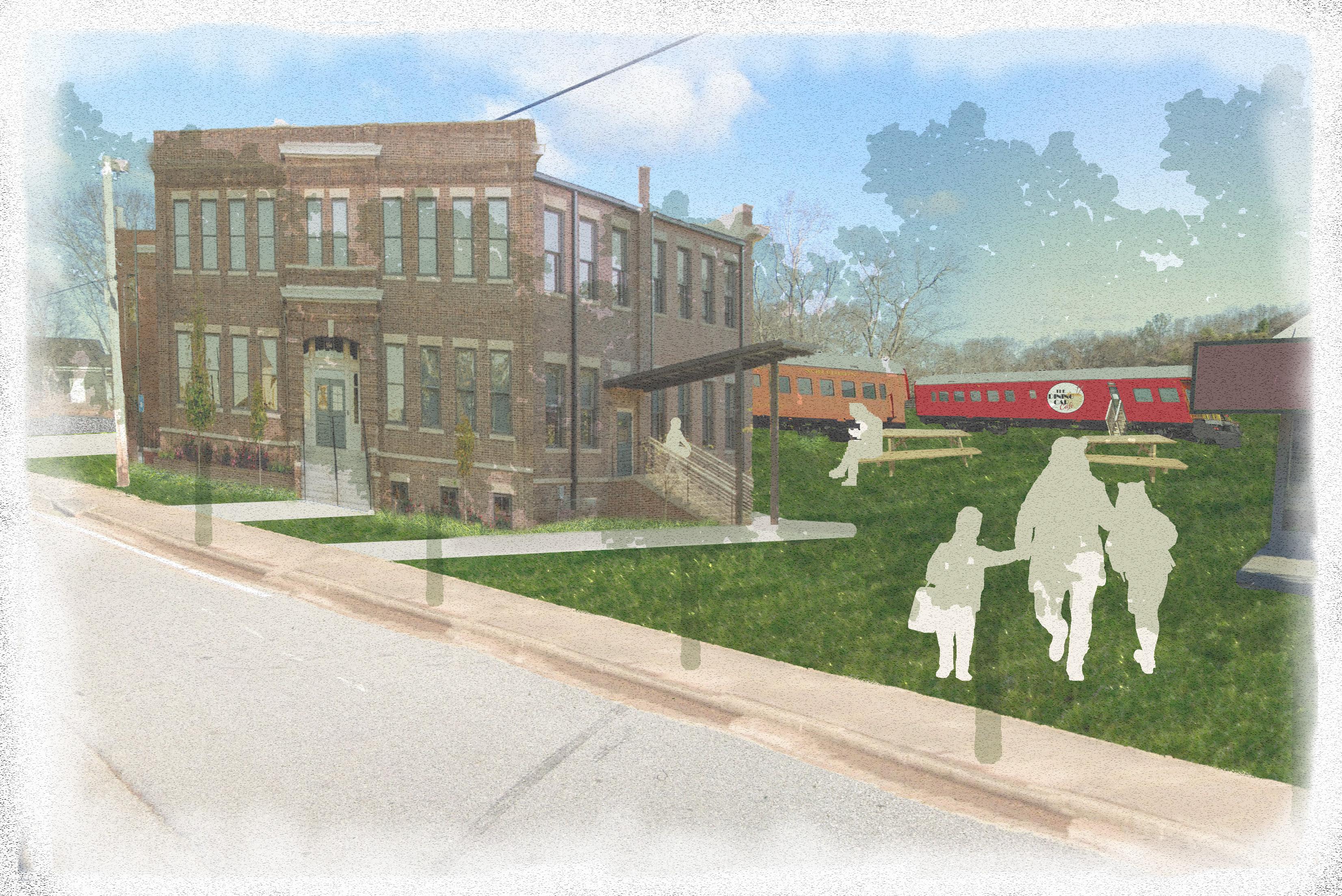 One of the central parts of the proposed Oak Street Depot development is the addition of the Southern Railway Food Park and community center. Central to the design, this repurposes railway cars into cafes, coffee shops, and other food stops and positions them southeast of the Firefly Trail. Accessible from both the trail and Oak Street, it offers a gathering place that also triggers economic growth and development. Furthermore, the community center fills a need as there are no nearby gyms, libraries, and event spaces.