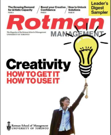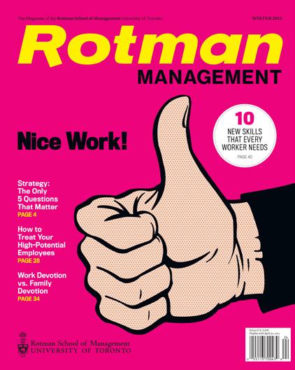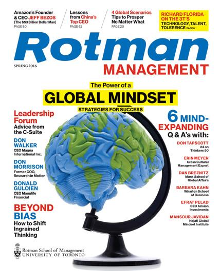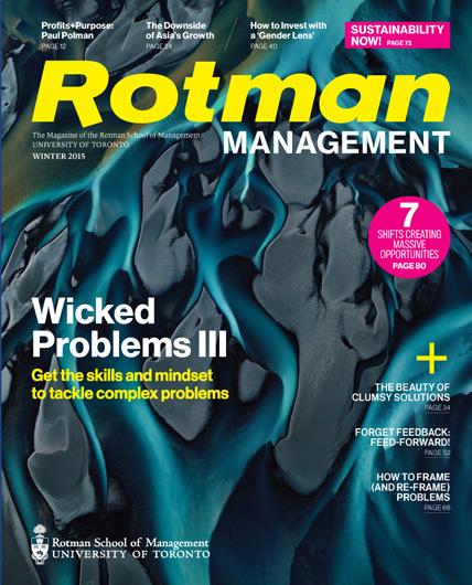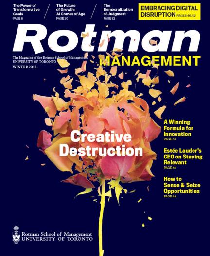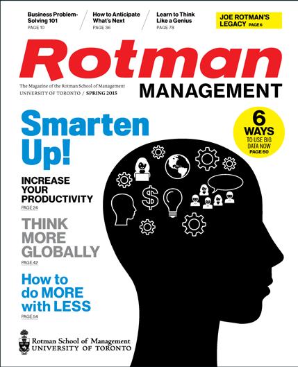 Published in January, May and September by the Rotman School of Management at the University of Toronto, Rotman Management explores themes of interest to leaders, innovators and entrepreneurs, featuring thought-provoking insights and problem-solving tools from leading global researchers and management practitioners. The magazine reflects Rotman’s role as a catalyst for transformative thinking that creates value for business and society.