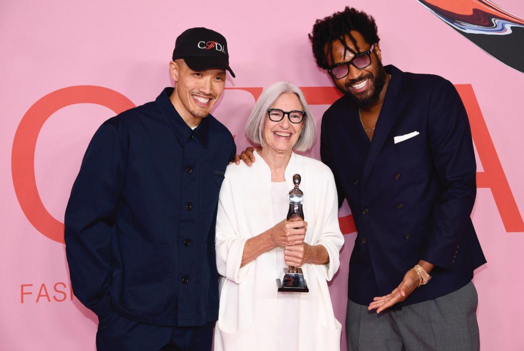 The apparel sector is the world’s second-biggest polluter, right after oil. Eileen Fisher, founder of the eponymous fashion brand (‘EF’), poses with the Positive Change Award, presented to her by designers Dao-Yi Chow and Maxwell Osborne at the CFDA Awards. Through its Circular By Design initiative, EF encourages clients to return their old clothes so they can be ‘upcycled’ into new products. Since 2009, EF has taken back 1.6 million garments. For more about the rise of the ‘conscious business’, read Navi Radjou’s article on page 32.