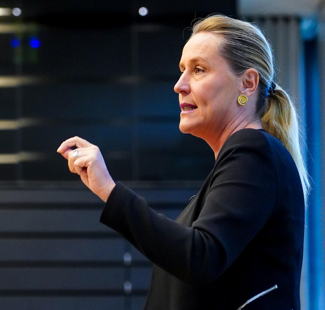 The Honourable Patty Hajdu, Minister of Minister of Employment, Workforce Development and Labour (above), and Sarah Kaplan, Director of the Institute for Gender and the Economy (right), at a fireside chat with Rotman students on October 31.