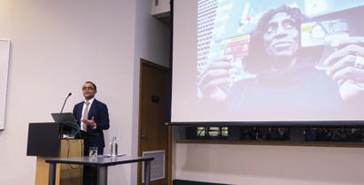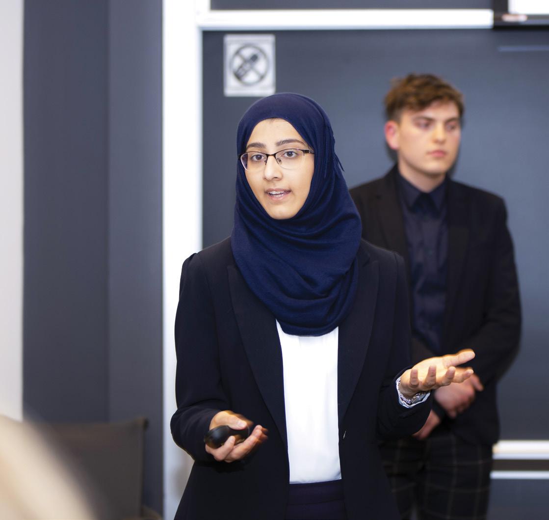 MBA Fellow and course participant, Narjis Premjee, presents her group's work on improving savings and investment behaviour among new parents to Canadian bank executives.