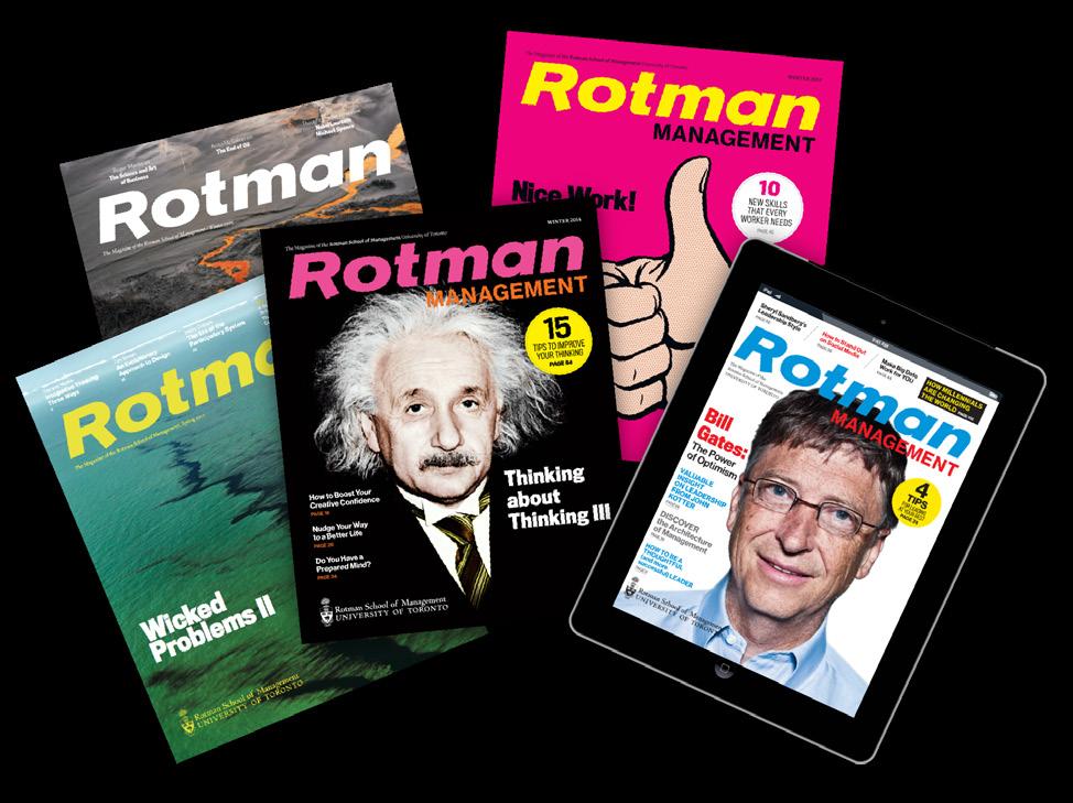 Delaine Hampton is an Adjunct Professor and Executive-inResidence at the Rotman School of Management. She was formerly the Director of Consumer and Market Knowledge at Procter & Gamble Global. Mark Leung (Rotman MBA ’06) is Director of Rotman Designworks, the Business Design Lab at the Rotman School. Dilip Soman is the Corus Chair in Communication Strategy and Professor of Marketing at the Rotman School. He is the author of The Last Mile: Creating Social and Economic Value from Behavioural Insights (Rotman-UTP Publishing, 2015).