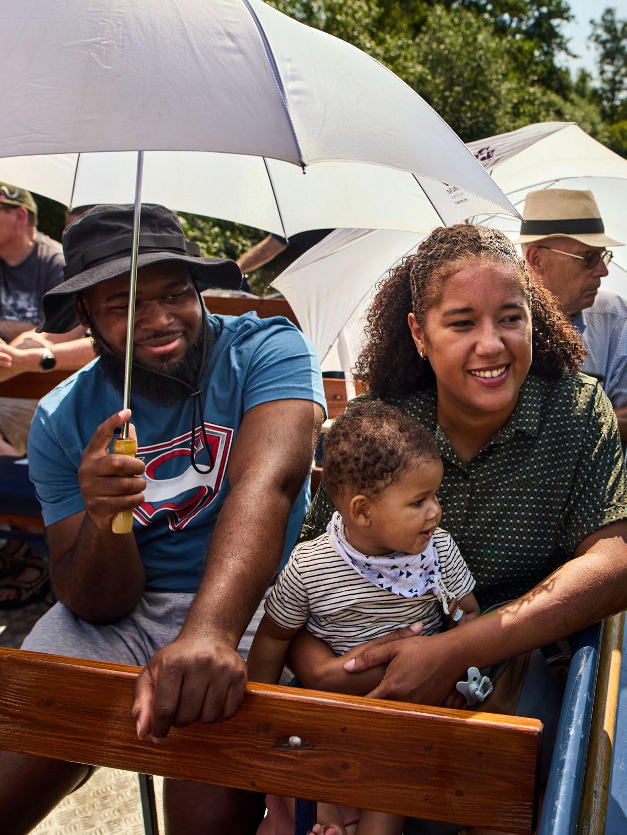 ‘Wat is het hier mooi…’ Diwa en haar man Allistair kijken hun ogen uit aan boord van Fluisterboot de IJsvogel. Samen met hun zoontje Elai en nog zo’n twintig passagiers maken ze op deze mooie herfstmiddag een tochtje door de wateren van Spijkenisse en omgeving. We zijn het centrum inmiddels uit en de elektrische boot glijdt geruisloos door de groene polder. Koeien staan te grazen in het weiland, enorme libellen zoemen door het riet en af en toe zwemt er een gans of een zwaan voorbij. Een idyllisch plaatje!