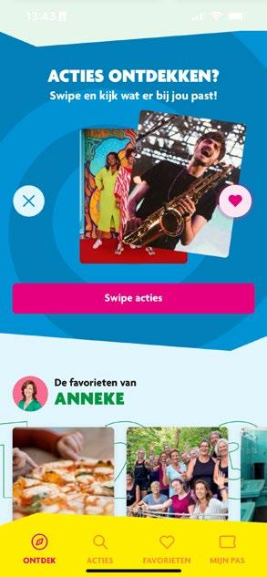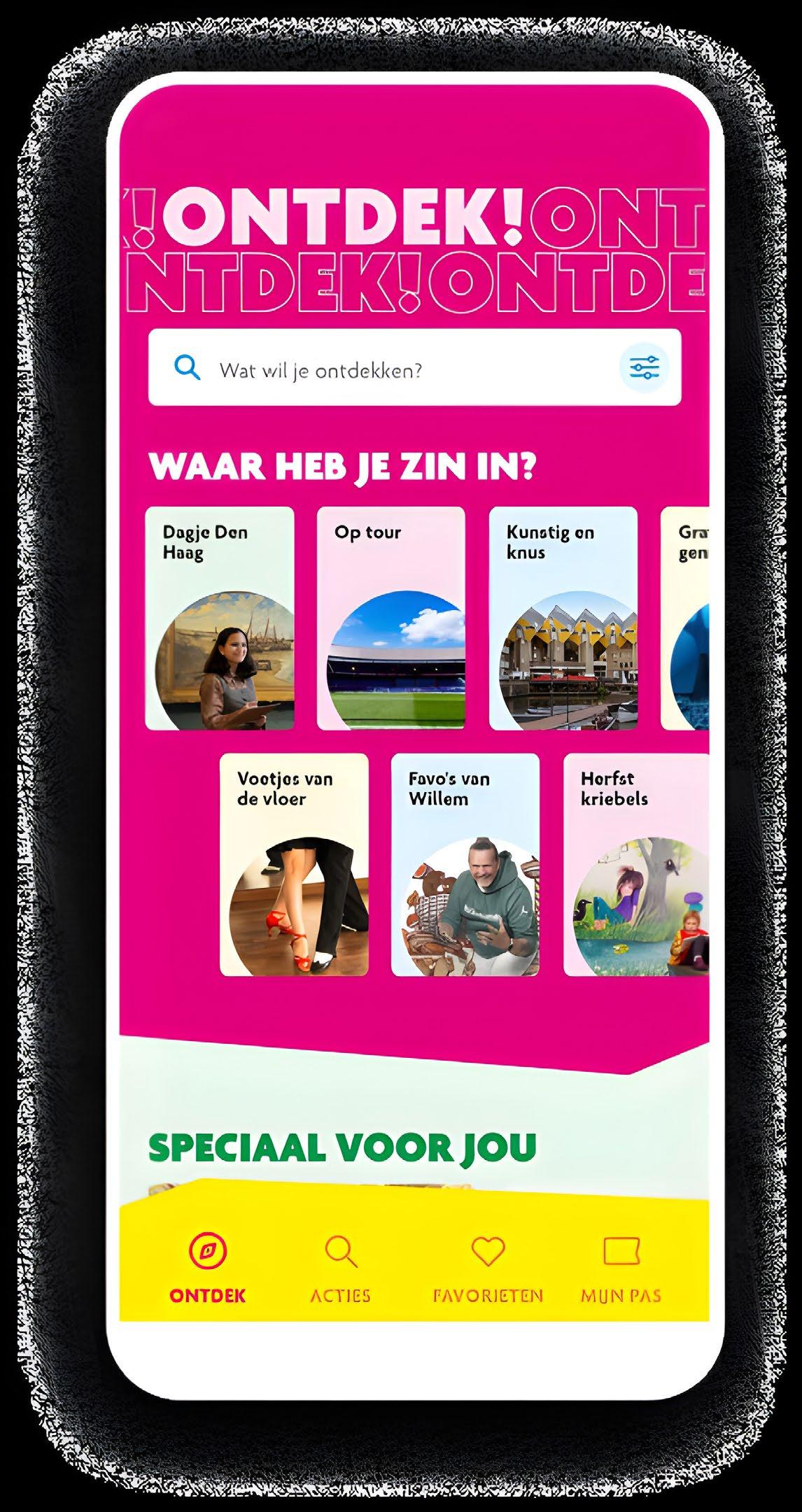 In de Rotterdampas app heb je álle acties handig bij elkaar, in een lijst of op een kaart. Het zoeken, filteren en vinden van activiteiten is makkelijker. Óf swipe door de acties, net zoals je door dit magazine zou bladeren. Zie je iets leuks? Veeg de actie naar rechts en hij staat meteen op je favorietenlijstje.