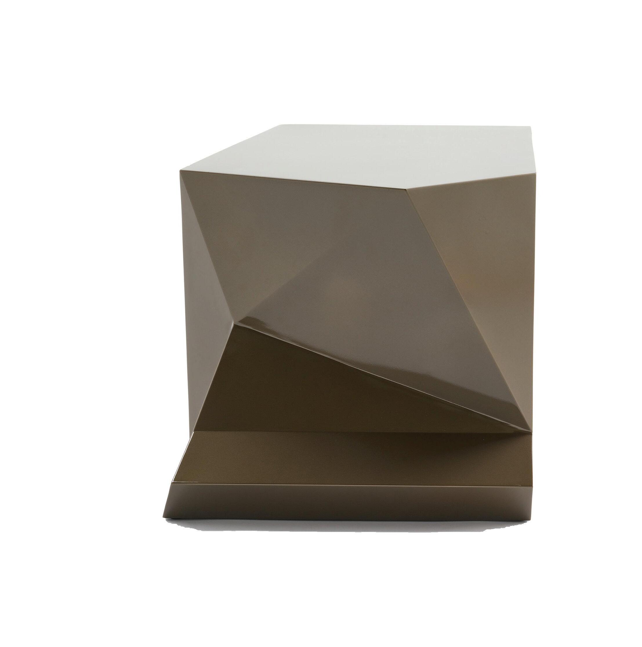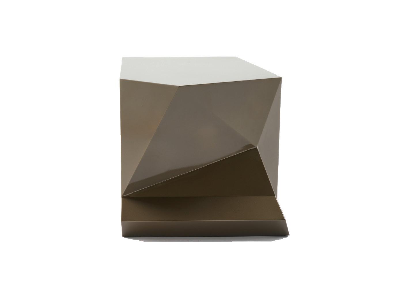 Striking and silently commanding attention, the original Powerful Table is a complex design of multiple faceted surfaces that result in unique faces which highlight reflections on its high lacquered surfaces and create playful shadows in its environment. Hidden within the flat square panel are a small storage compartment and power drawer with access to multiple outlets in order to conveniently charge a variety of devices.
