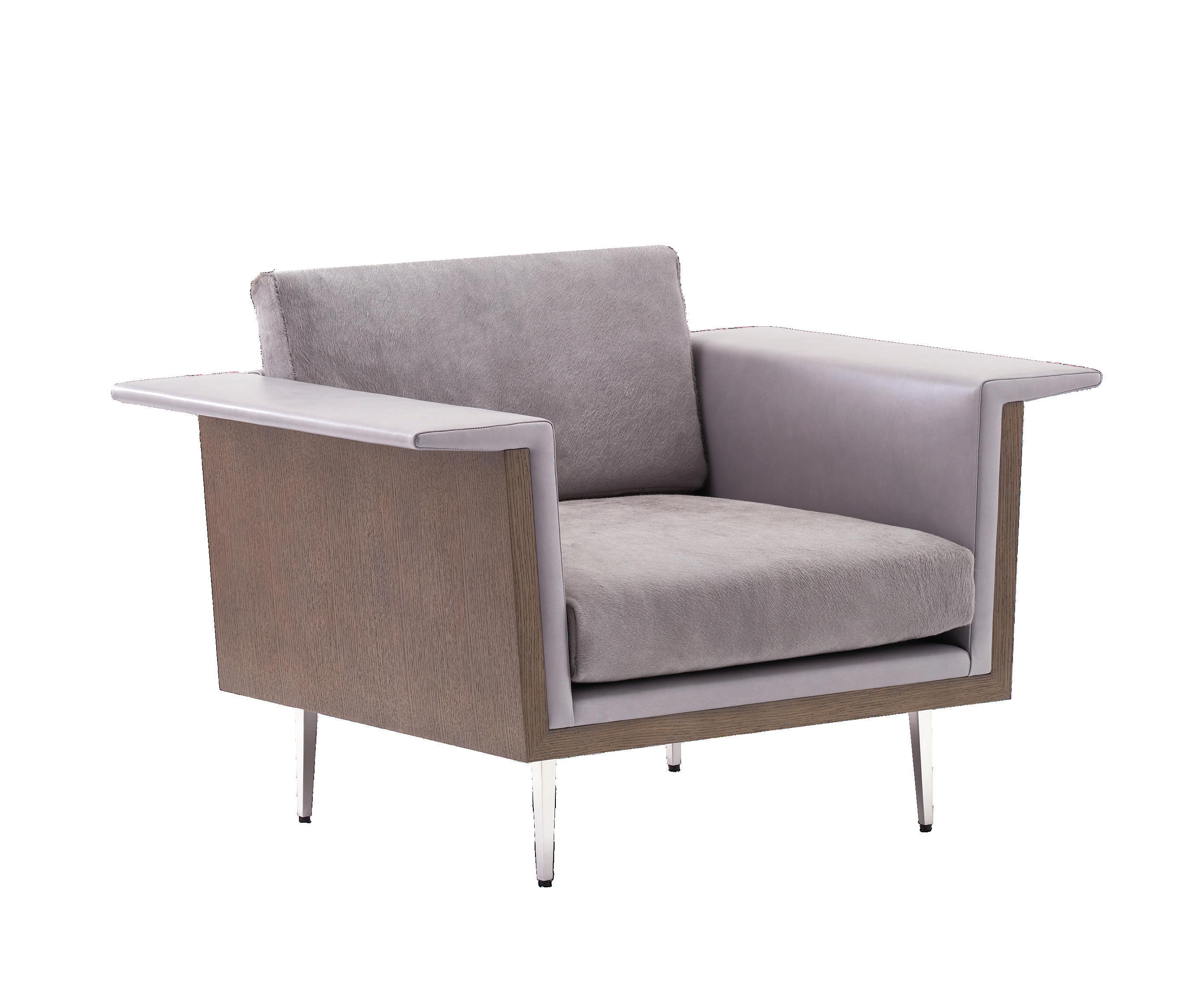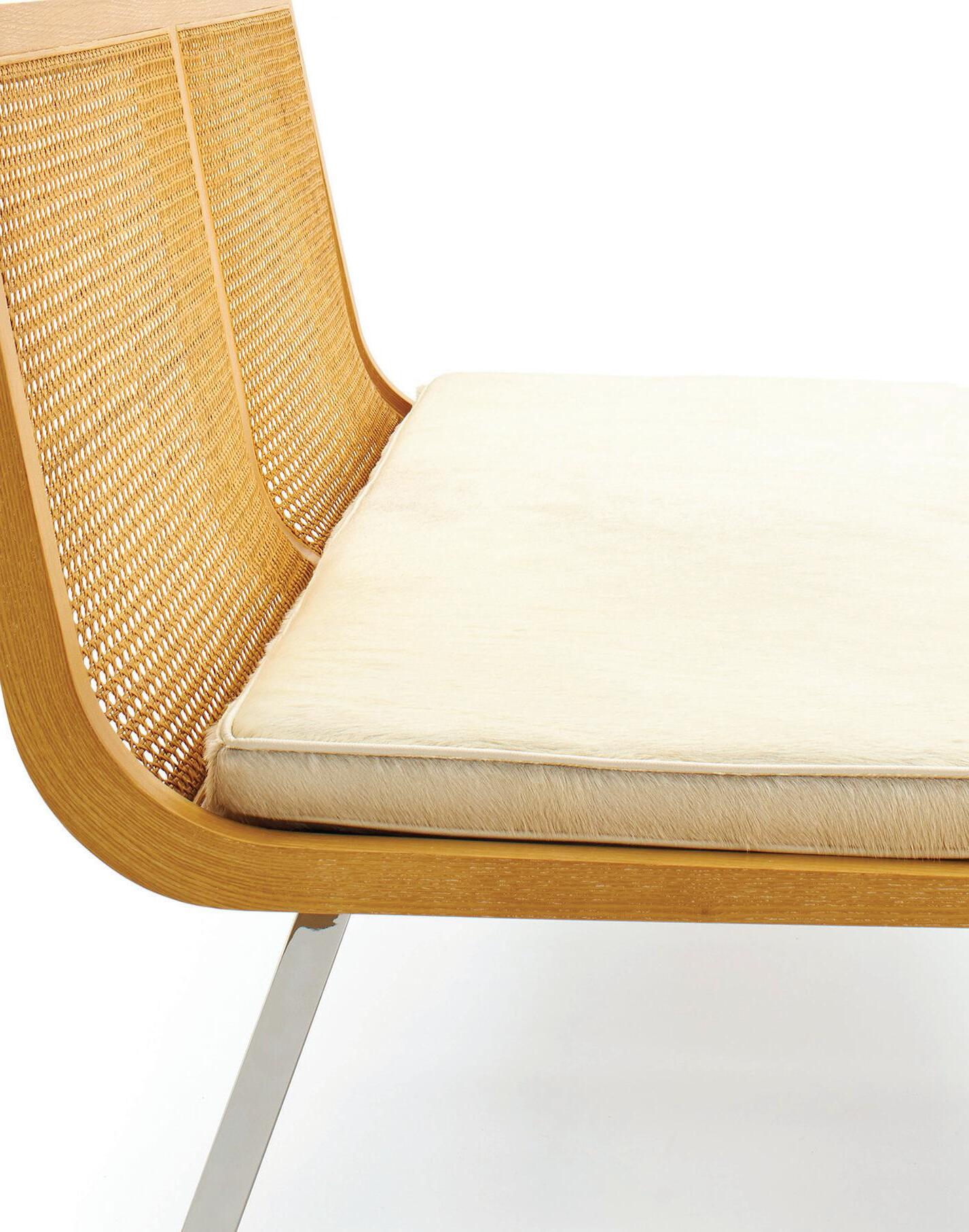 Inspired by the craftsmanship and detail of the George Nelson Montauk House, the Structured Lacquer Chair combines a high gloss lacquer, wood, and is available in a mix of leathers, hides, and furs.