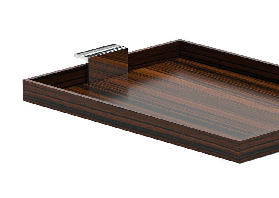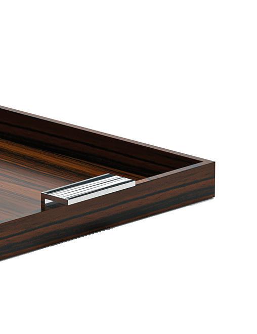The T Tray adds instant glamour to any setting. A serious statement piece that is at once both ornamental and functional, the polished metal cross tray is available with a polished brass or stainless steel frame and can be customized by selecting from a range of beautiful glass and acrylic inserts.