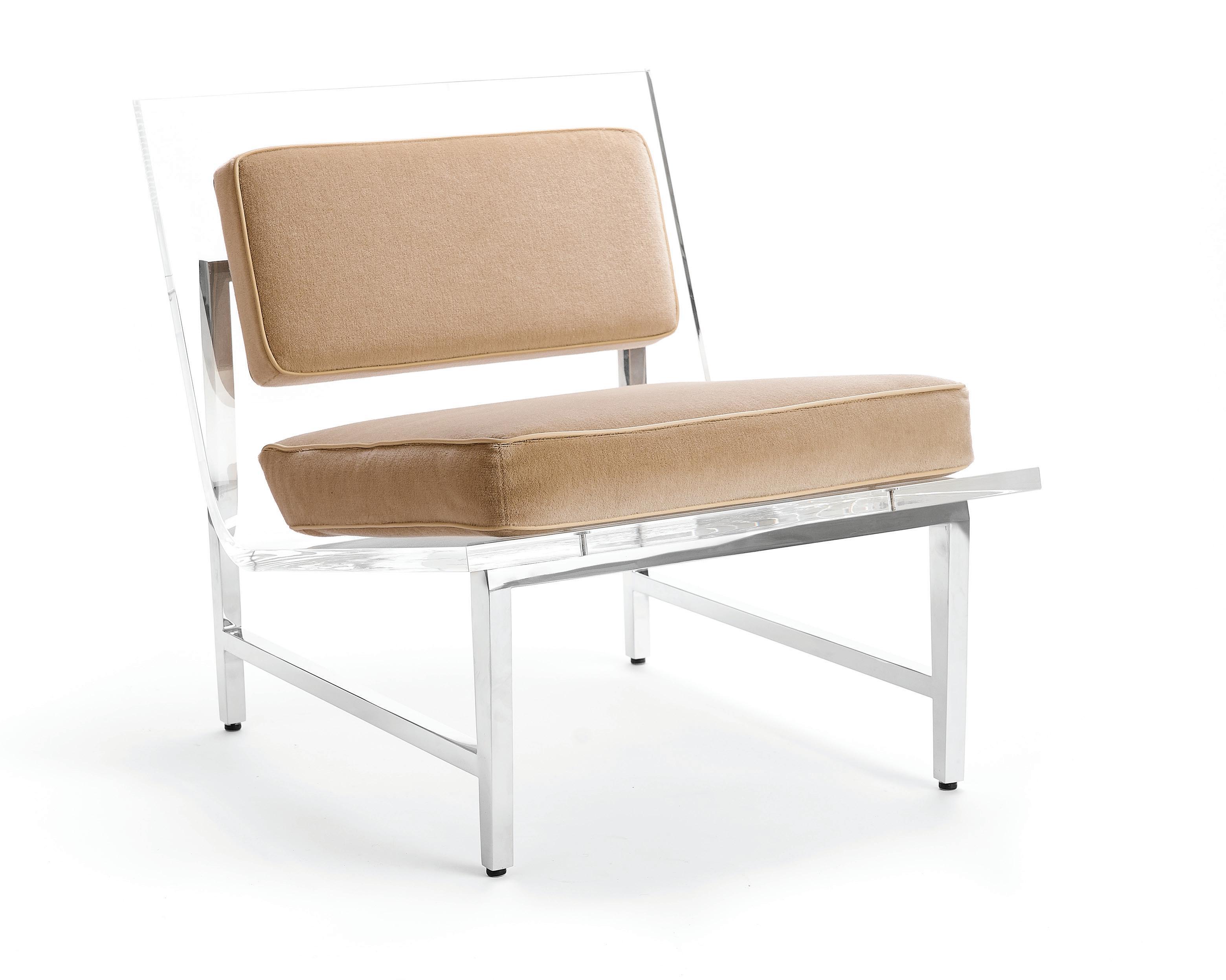 Named after the location of the famed Glass House, a structure where the interior spaces are almost entirely visible from the outside, the New Canaan Lounge Chair is composed of an acrylic base to reveal the clean, architectural lines of the stainless steel frame offering little distraction within its environment.