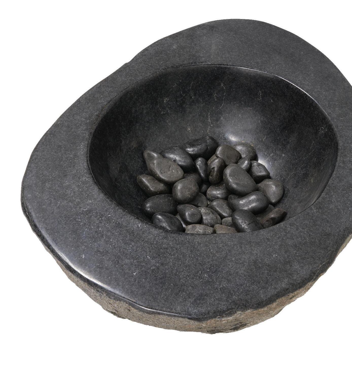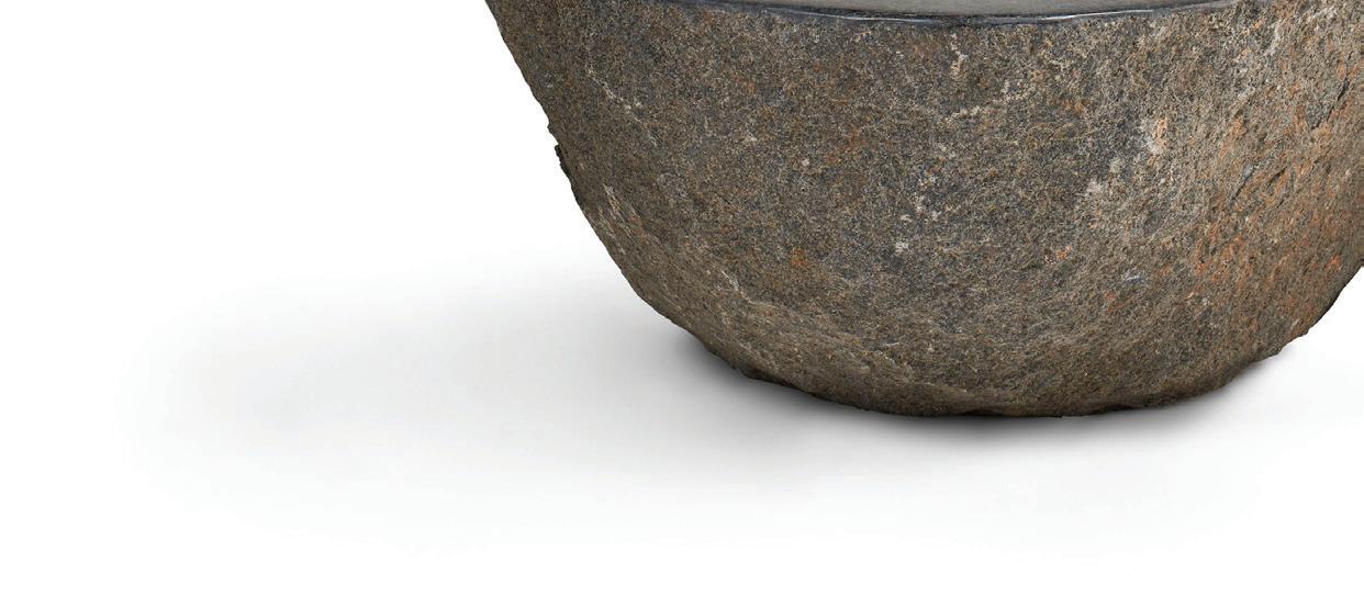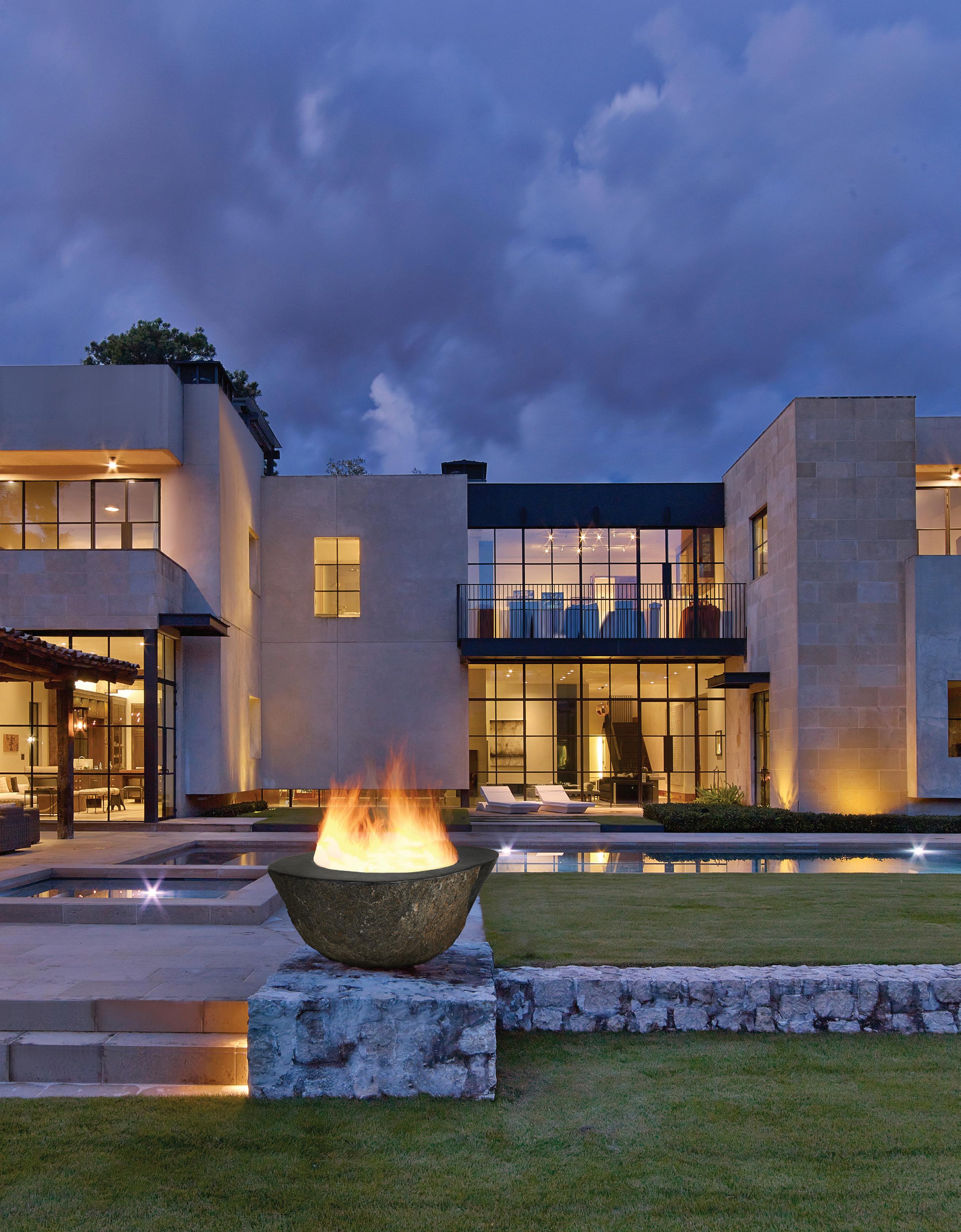 Both the Fenix Firepit and Fontaine Water Feature are handcrafted from a single block of basalt with a hole at the base to connect a gas line or water pump, respectively.