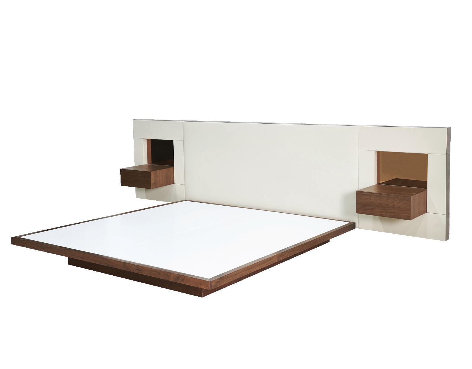 Inspired by nature and the serenity of the changing seasons, the Aspen Bed offers a cozy nest constructed of a wood base with a leather frame and features an elegantly curved headboard to promote the idea of a safe enclosure. The optional decorative headboard cased in metal adds a dramatic statement of luxury and accentuates the idea of a safe and serene slumber. Headboard sold separately.