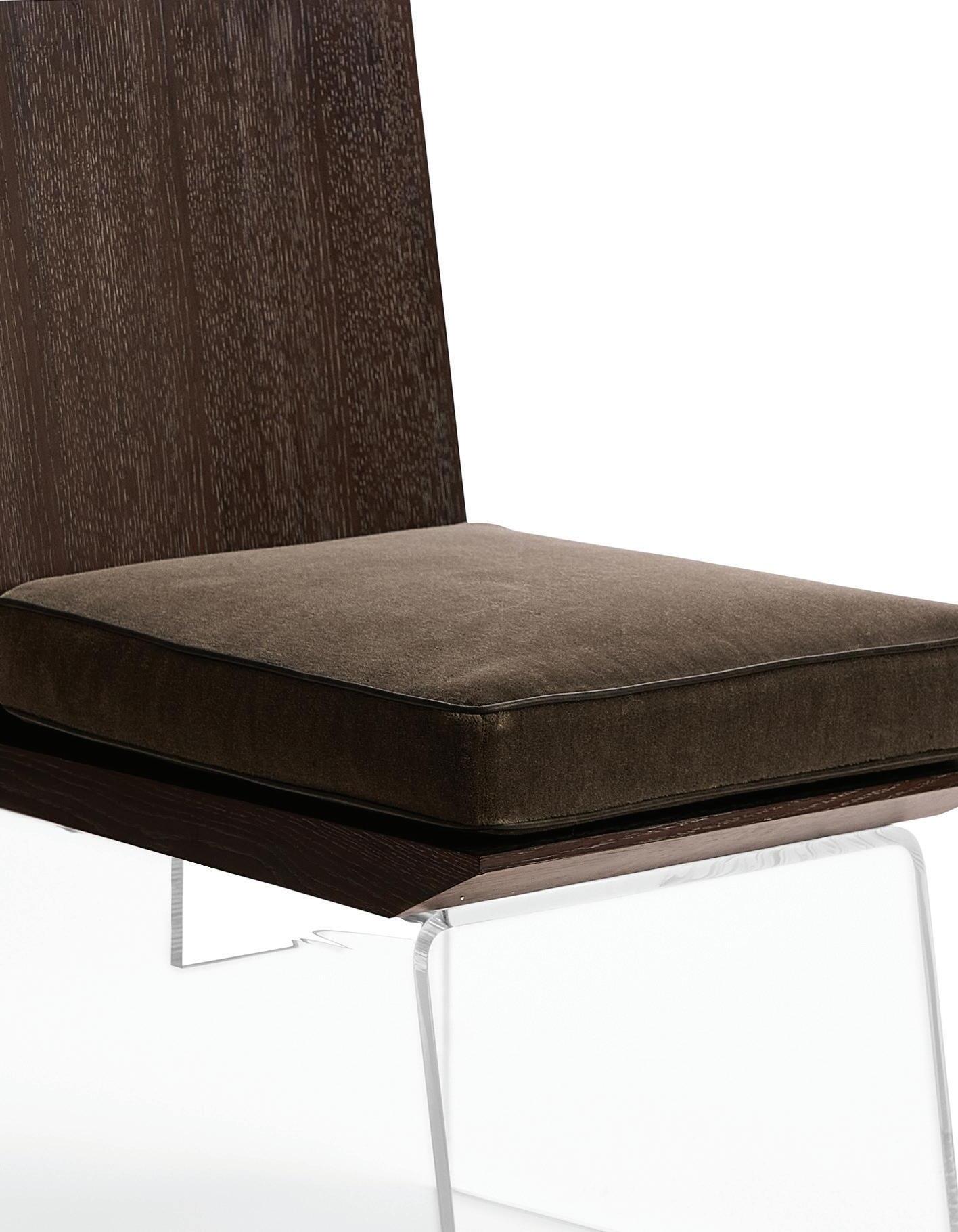 The Wood Float Chair blurs the lines between art and furniture and encourages an internal dialogue with the viewer. Is this art or can I sit in it? Both. Handcrafted from solid walnut, the wide and angular lounge-like frame includes a transparent acrylic seat and back that gives the illusion as if the hollow structure is floating while casting playful shadows within its setting.