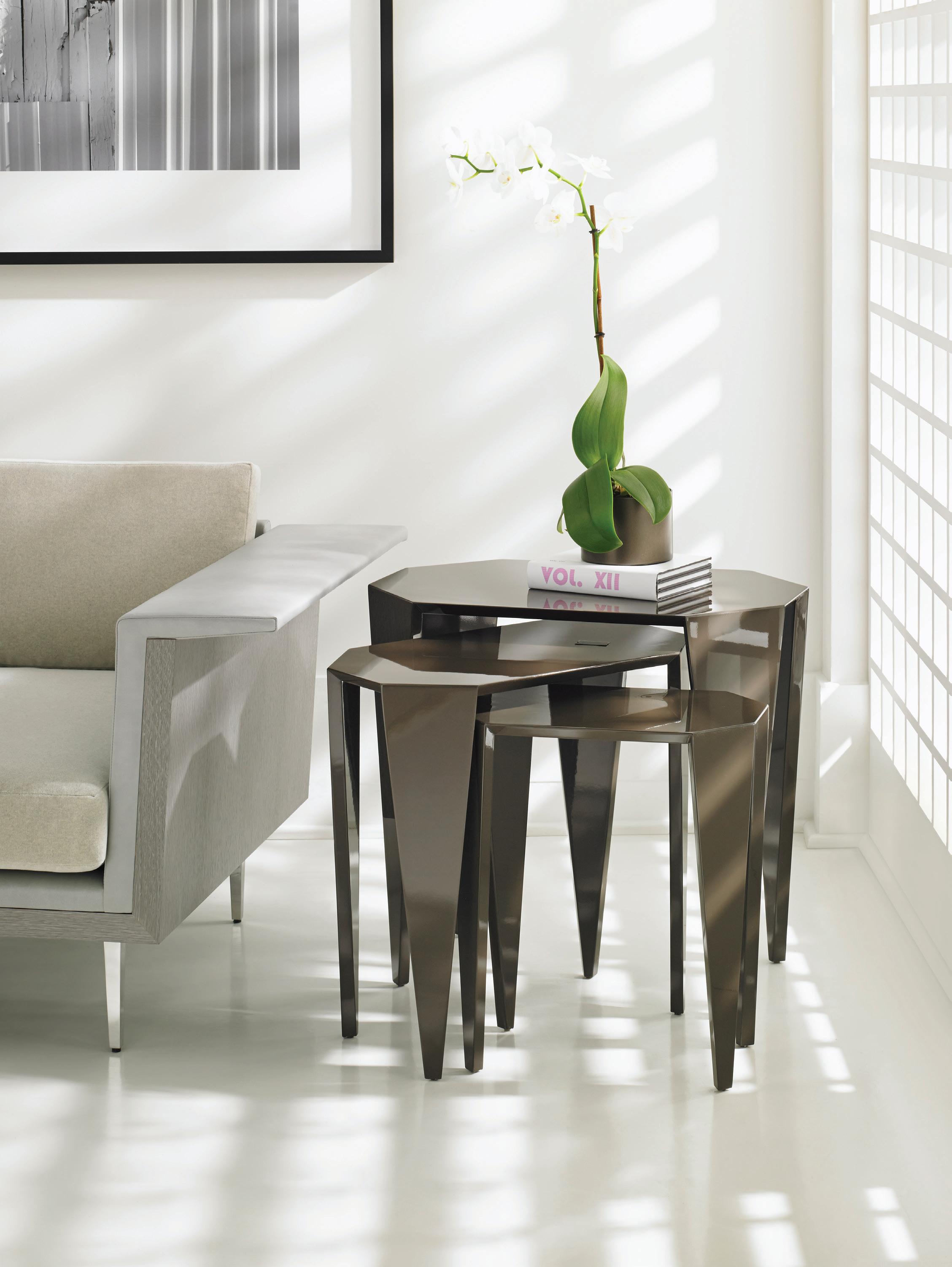 The Cubist Collection is about abstraction or distortion of the literal. The Origami Nesting Tables follow this theme of irregular shapes and tops. They mimic the Japanese tradition of origami, the art of folding paper and transforming it into something new.