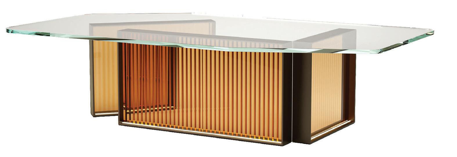 The Aurora Table is a compelling statement piece that commands attention. Designed with a tempered glass top that rests softly on two sturdy bronze and cast glass legs, the table captures light and emits a soft, natural glow which complements a wide variety of interior styles.