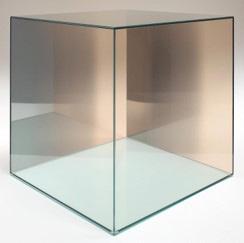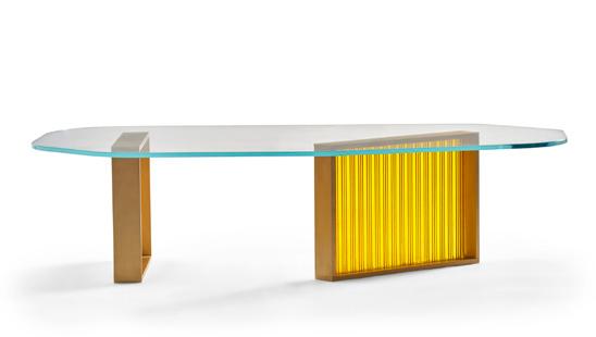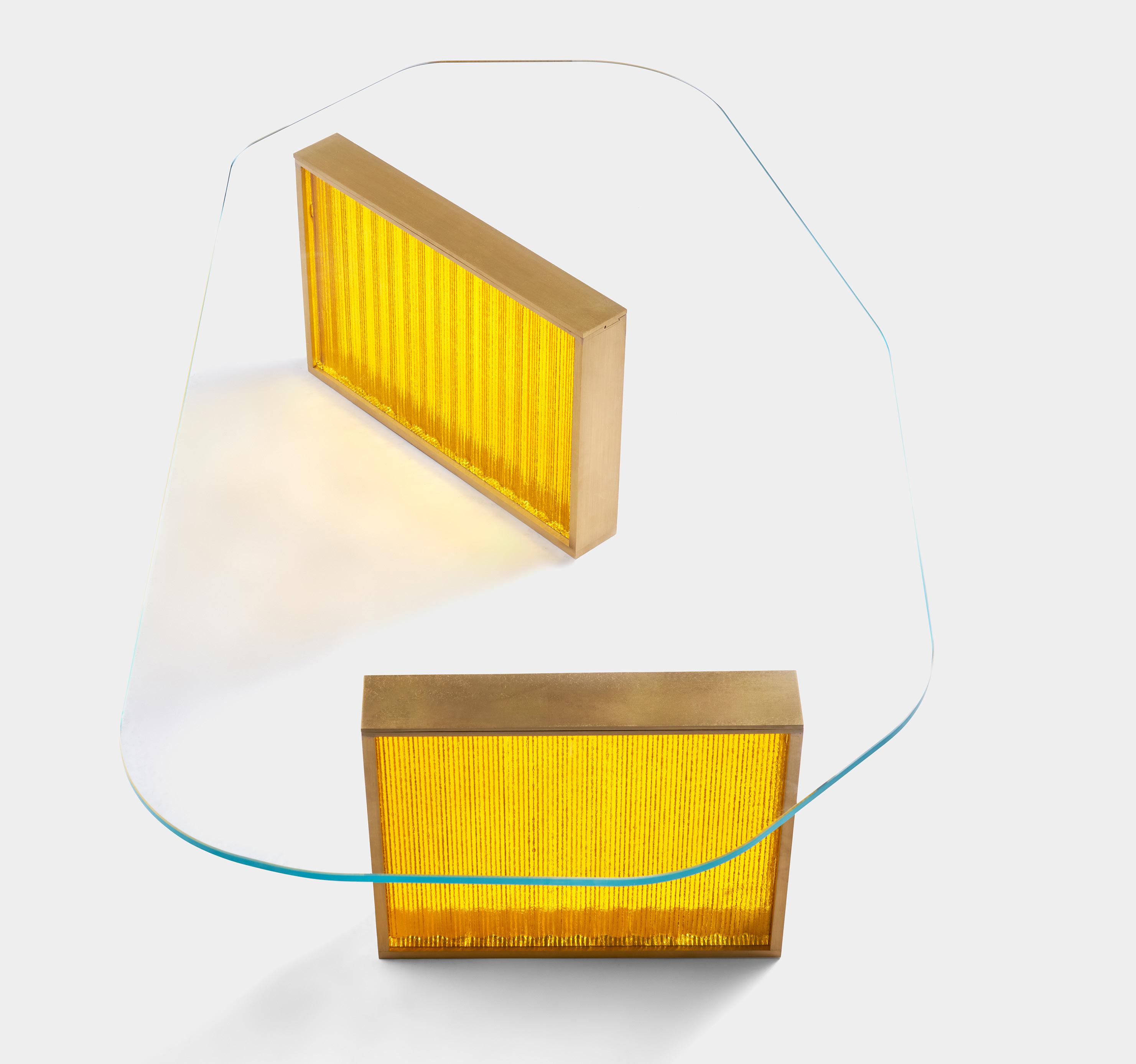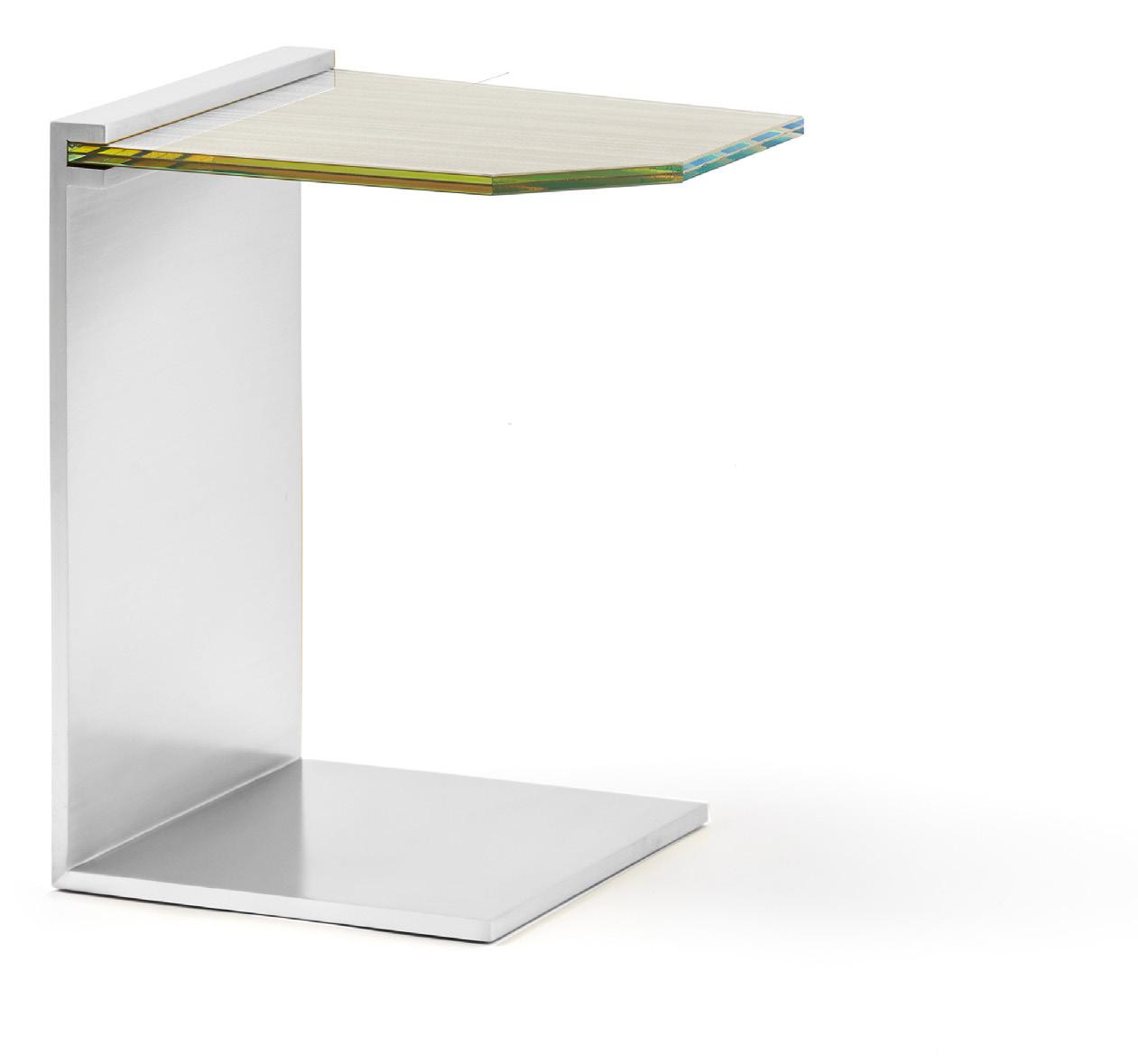 As natural light changes throughout the day, the surfaces of the table dramatically shift color, reflecting and refracting colored shadows that create a dialogue with its surrounding environment.