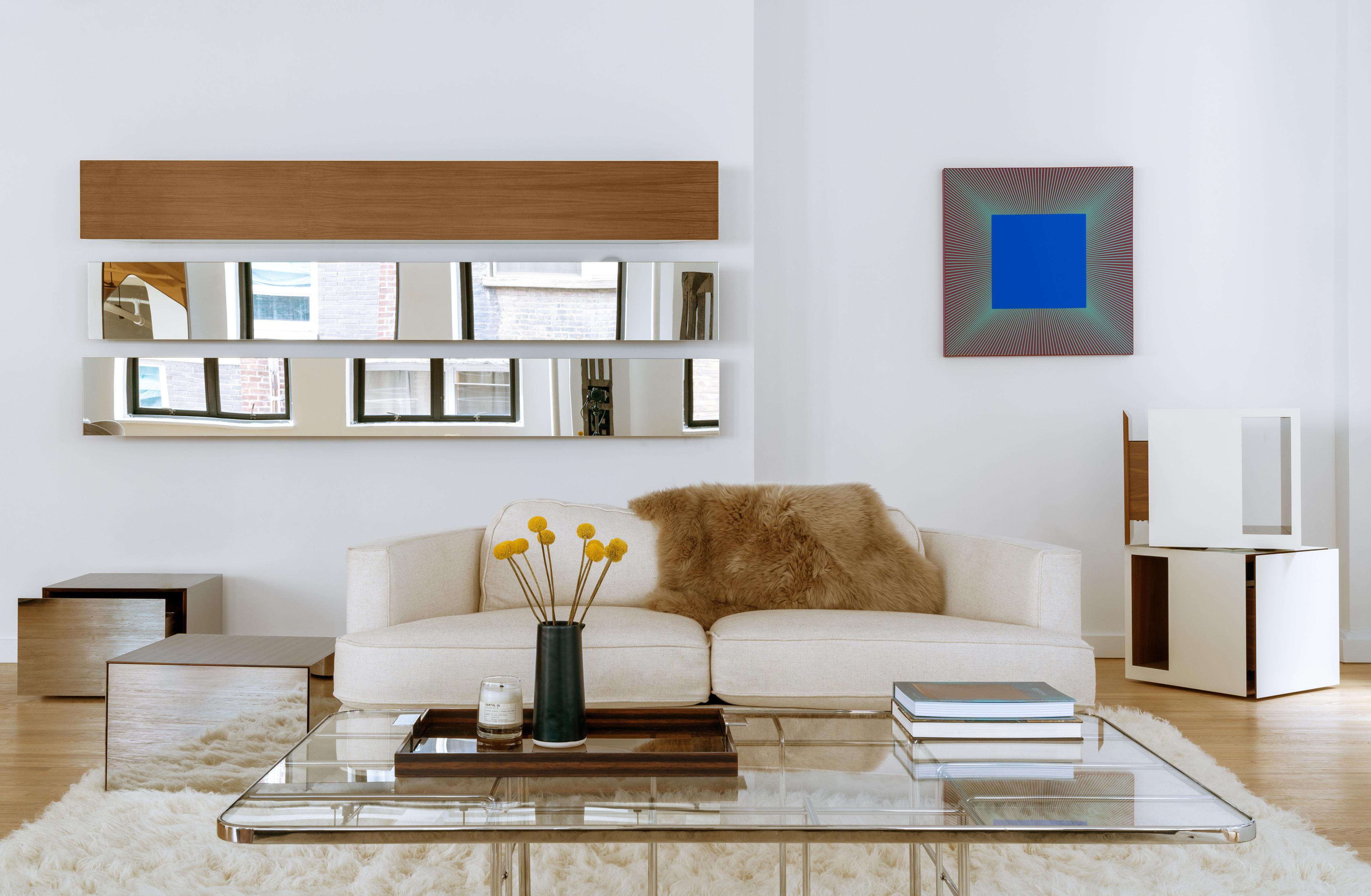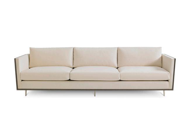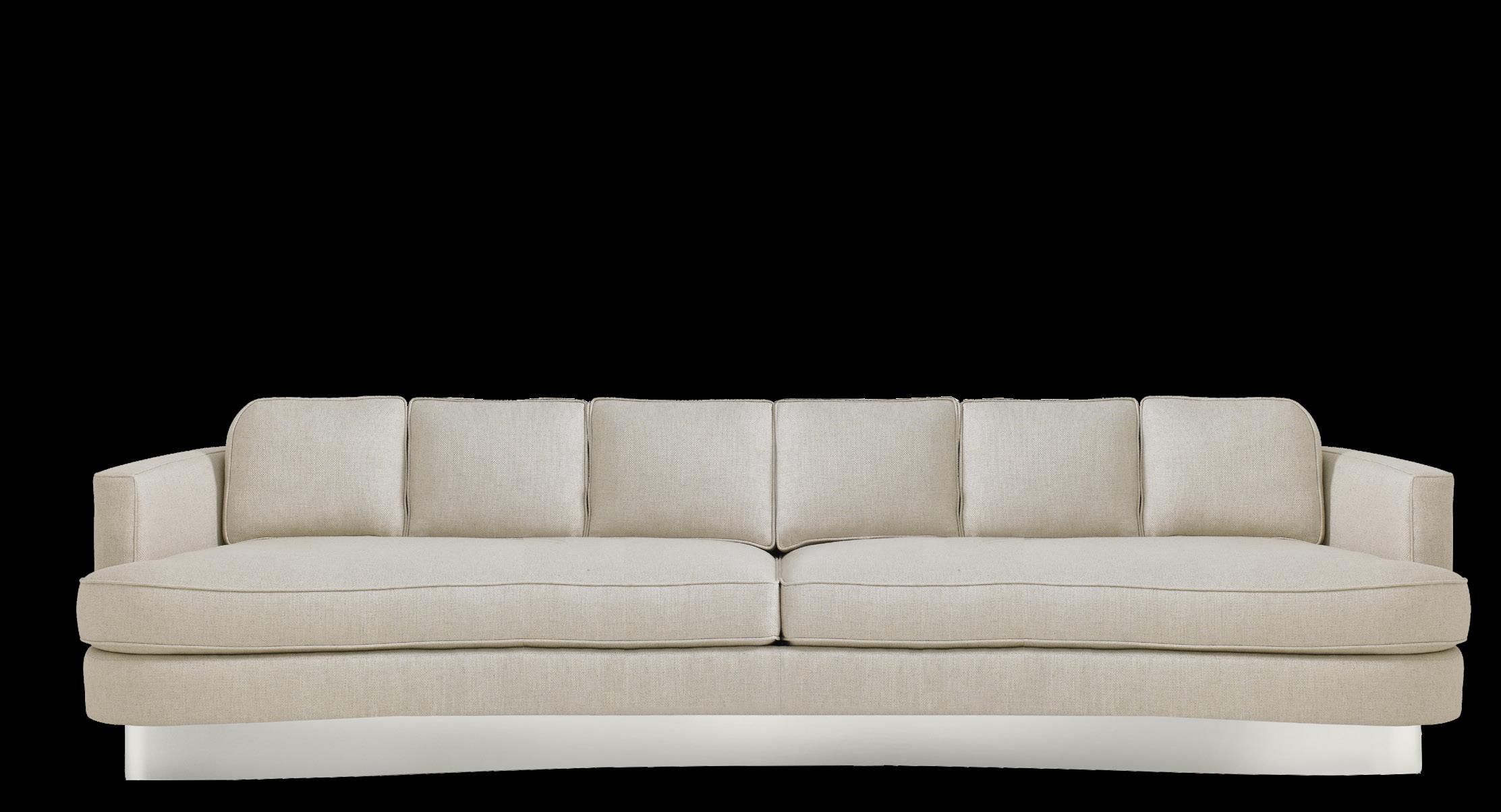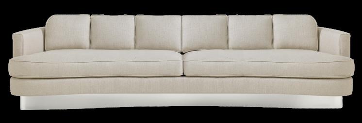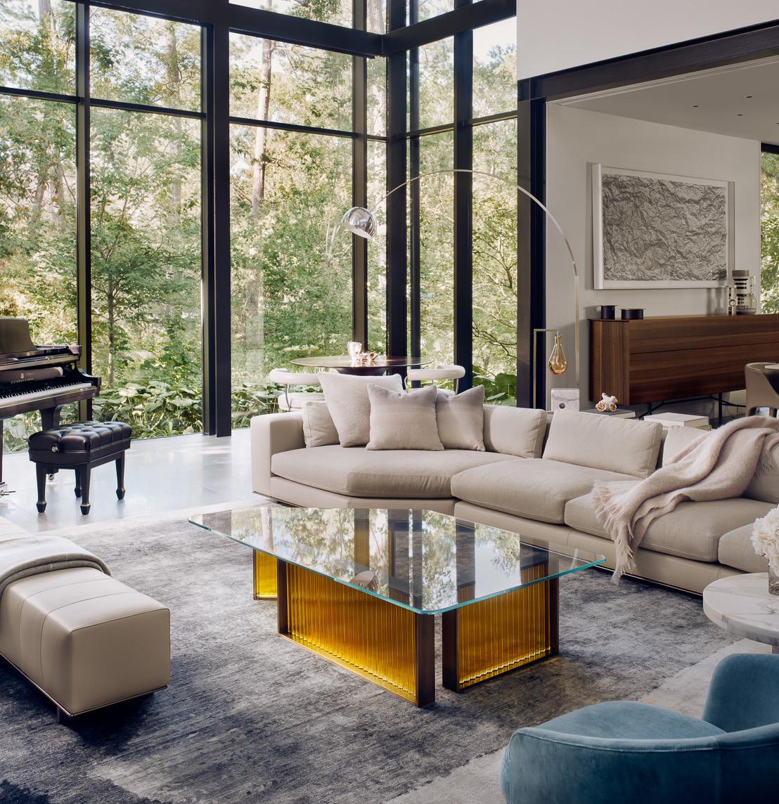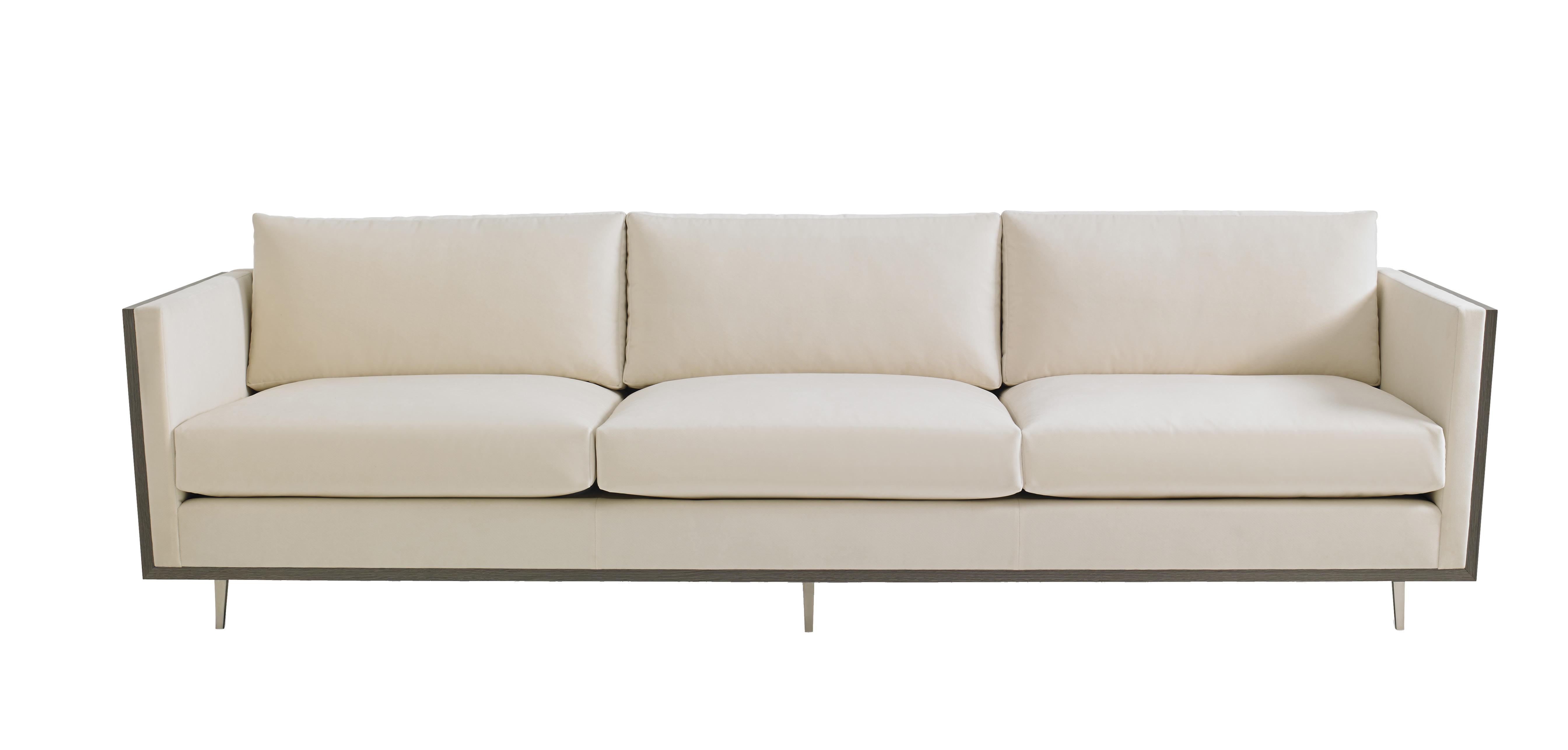 A wood base replaces the acrylic in this version of the New Canaan Sofa. The original was named after the location the renowned Glass House, a structure where the interior spaces are almost entirely visible from the outside. The New Canaan Lounge Chair is composed of an acrylic base to reveal the clean, architectural lines of the stainless-steel frame offering little distraction within its environment.