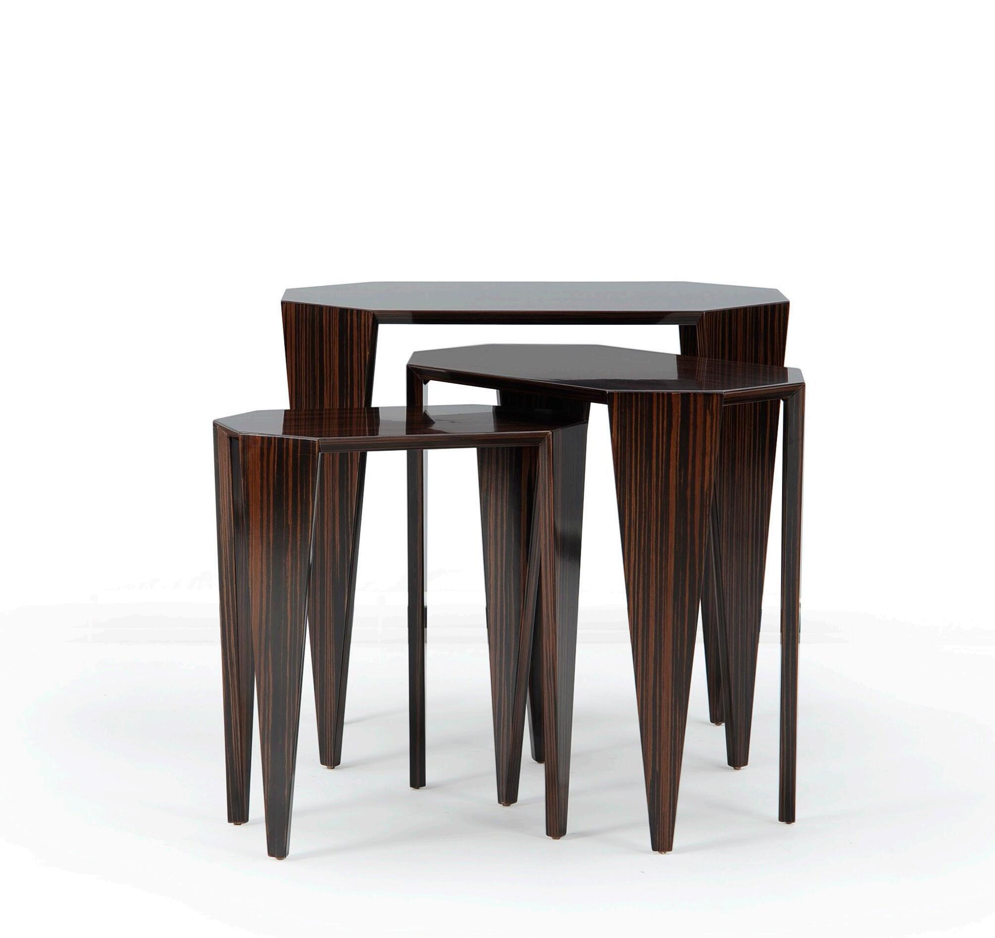 The Cubist Collection is about abstraction or distortion of the literal. The Origami Nesting Tables follow this theme of irregular shapes and tops. They mimic the Japanese tradition of origami, the art of folding paper and transforming it into something new.