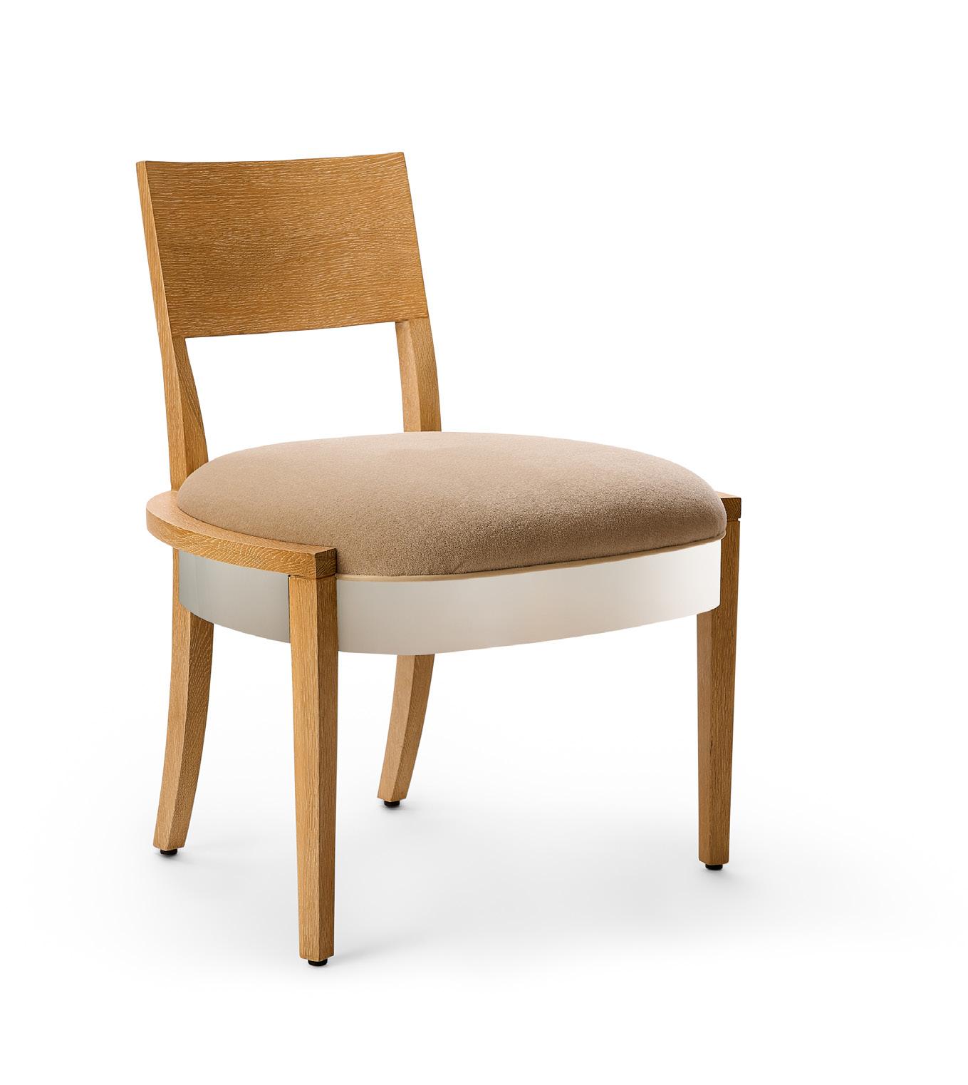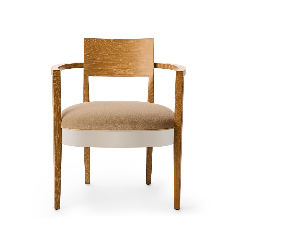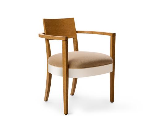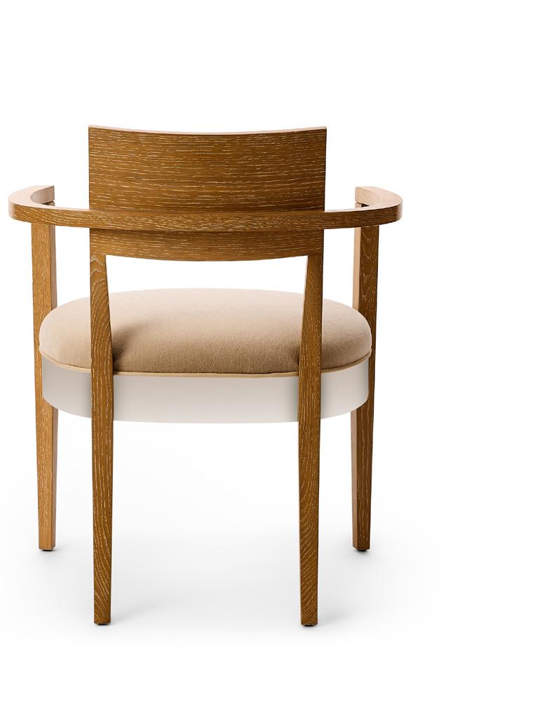 Comprised of a solid wood frame with metal legs and an upholstered seat with leather accents, the Structured Reading Chair is an elegant armchair that is as strong and supportive as it is comfortable and functional. The wide, flat arm surfaces are engineered to double as a work surface with a laptop or hold a tray of food and drinks or even act as side seats to gather for a family photo.