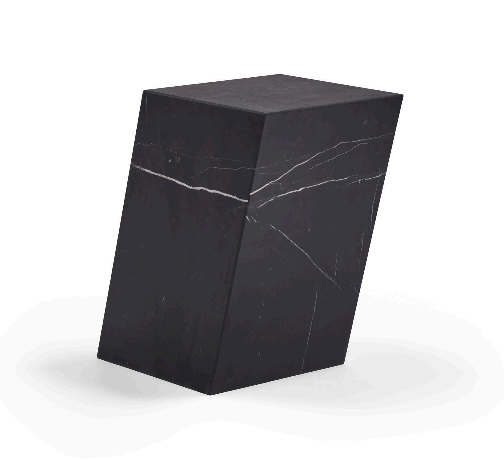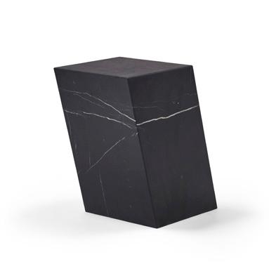 The Kilter Table plays with the idea of the movement of an otherwise stagnant object. The skewed angles disrupt the balance of a perfect rectilinear block creating energy that evokes the impression of movement while remaining firmly and solidly grounded.