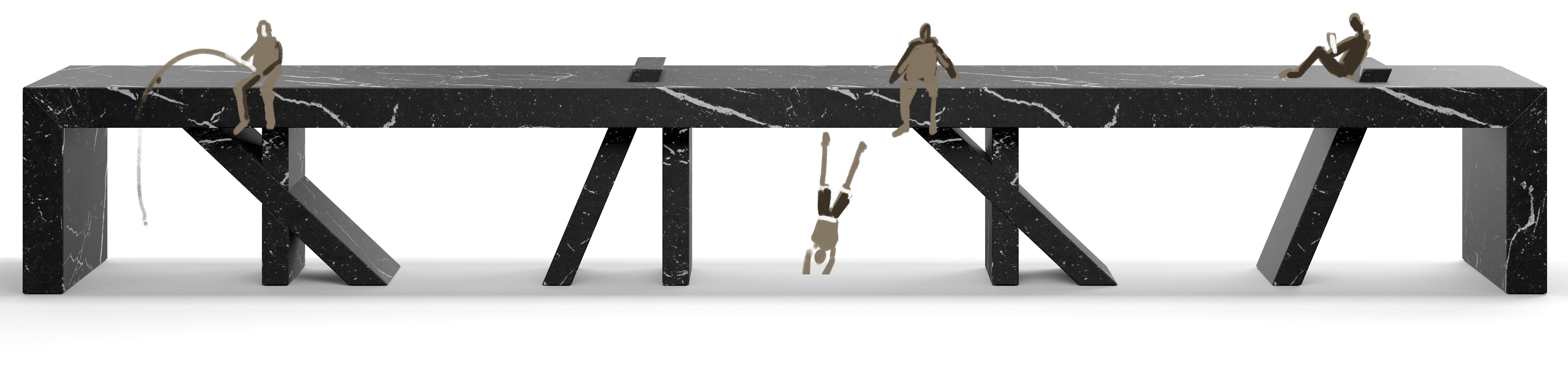 Typically, benches feel so static and lack personality; however, the angled legs and balanced composition of the Walking Bench give it life and character as if taking a “walk”, hence the name. It is offered in different lengths for different applications and settings (the longer the bench, the more legs and the more visual energy it exudes).