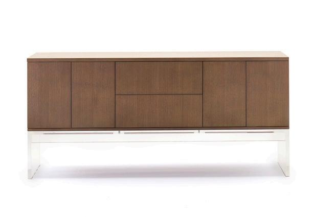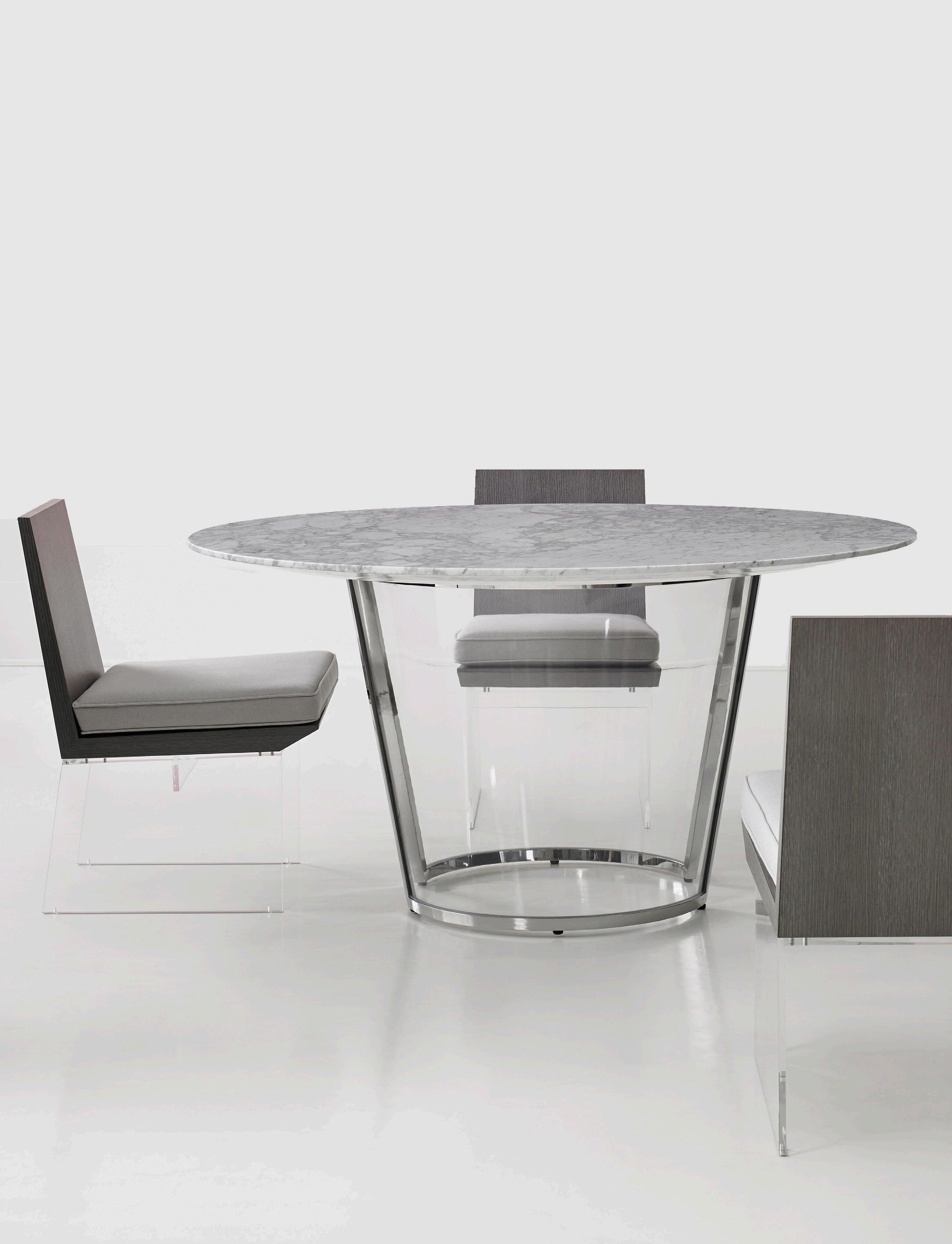 Designed to evoke a sense of airiness and light, the surface of the Float Dining table hovers above its clear acrylic base taking minimal visual space in the room.