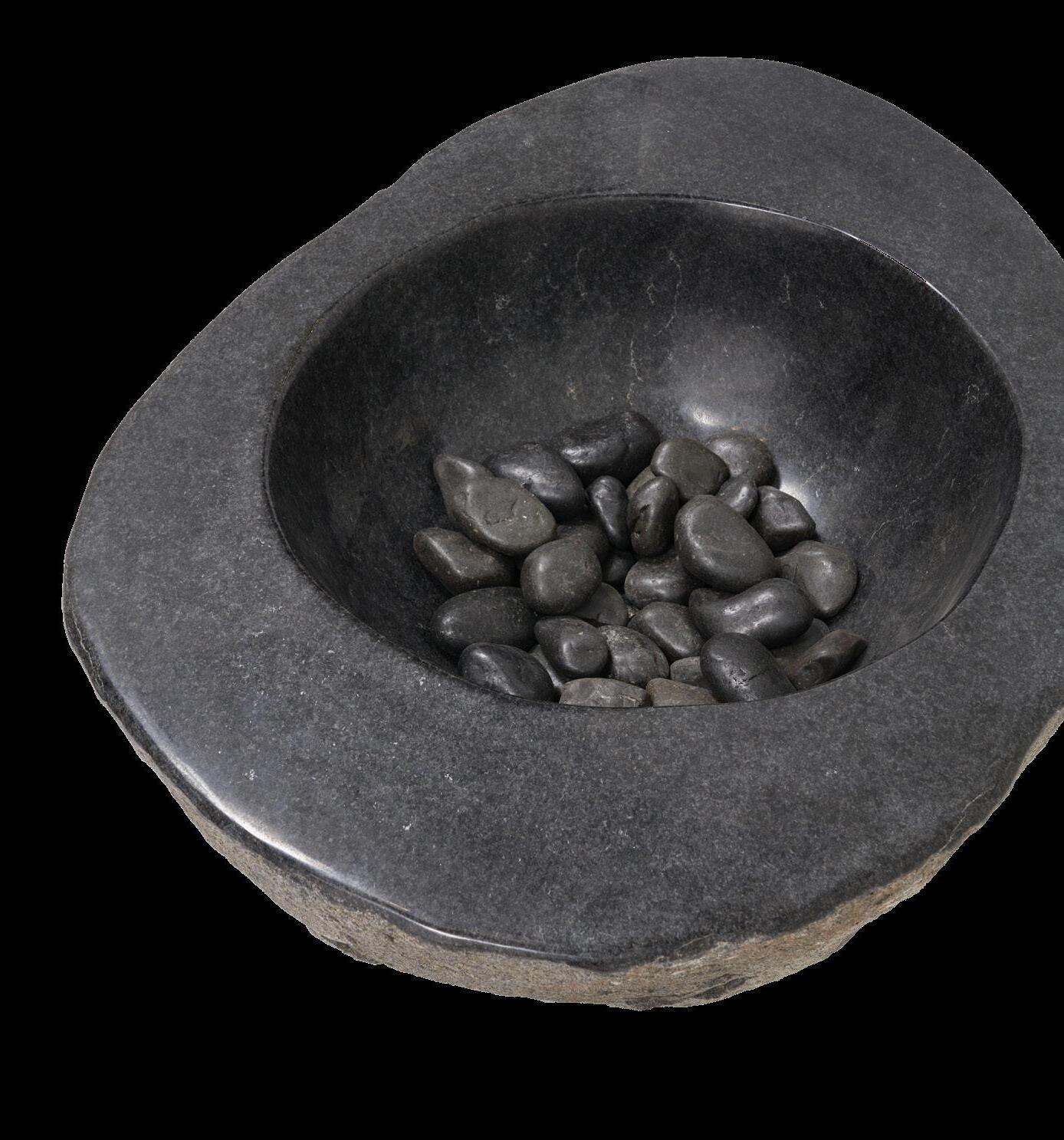 Both the Fenix Firepit and Fontaine Water Feature are handcrafted from a single block of basalt with a hole at the base to connect a gas line or water pump, respectively.