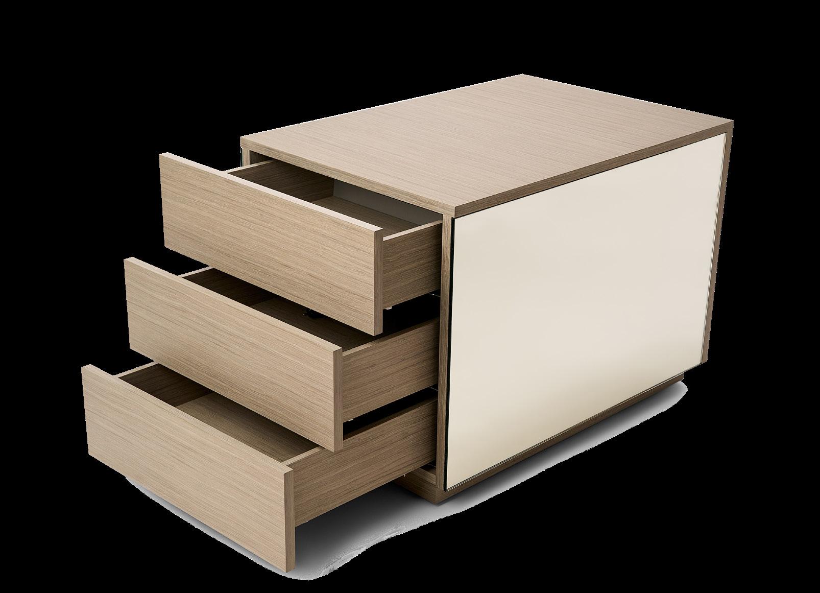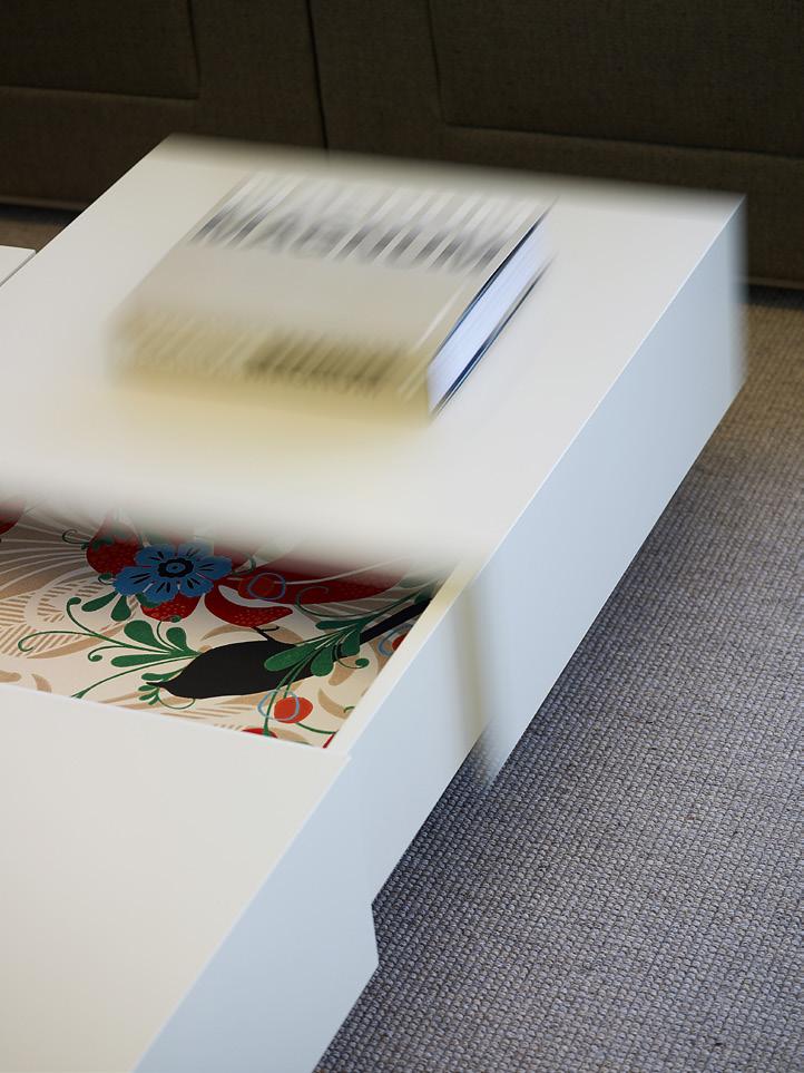 The Powerful Void Table offers a minimal design that plays off the idea of layers through its unique use of materials. As the soft white lacquered exterior shell is carved away a warm walnut interior is revealed through the hollow vertical incision and hidden storage drawer, which also offers multiple power outlets to conveniently charge or conceal several devices.