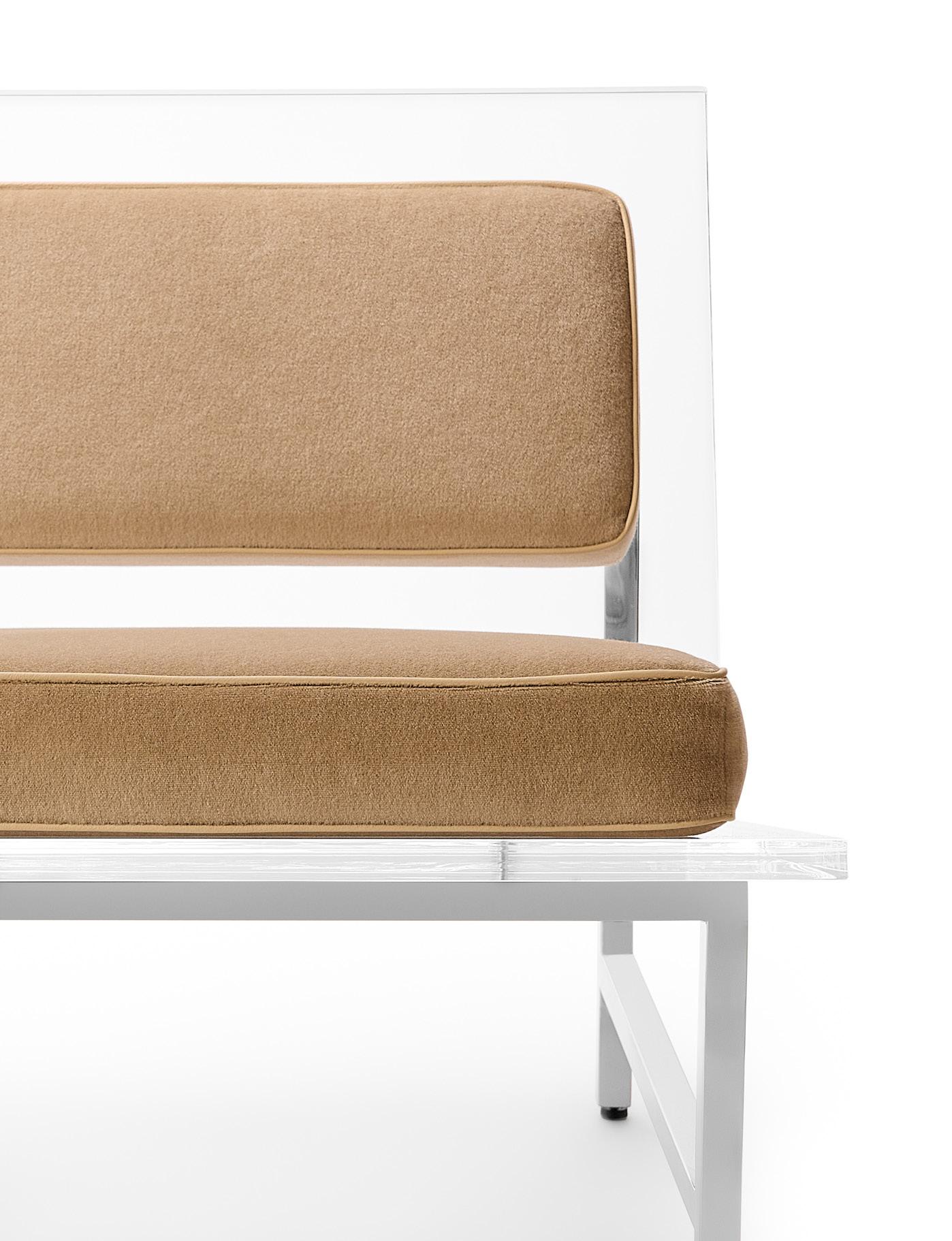Named after the location of the famed Glass House, a structure where the interior spaces are almost entirely visible from the outside, the New Canaan Lounge Chair is composed of an acrylic base to reveal the clean, architectural lines of the stainless steel frame offering little distraction within its environment.