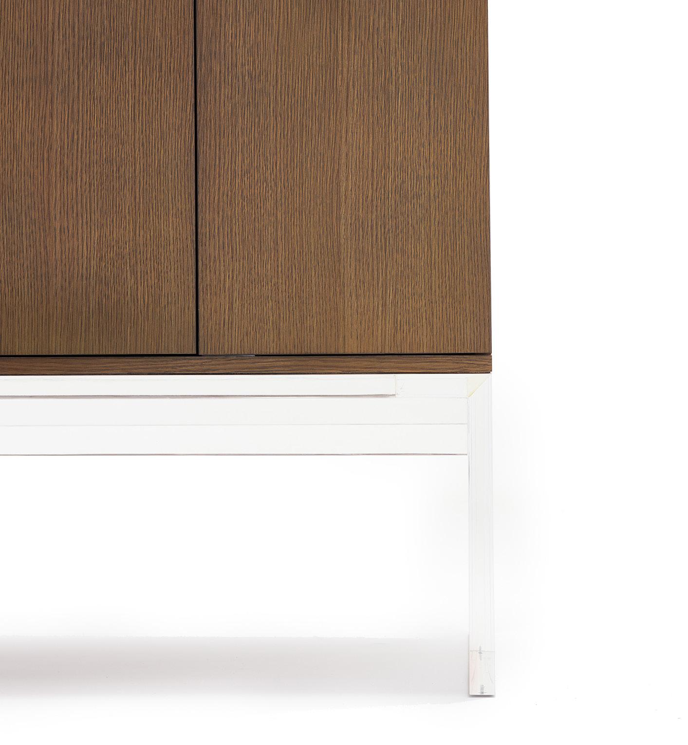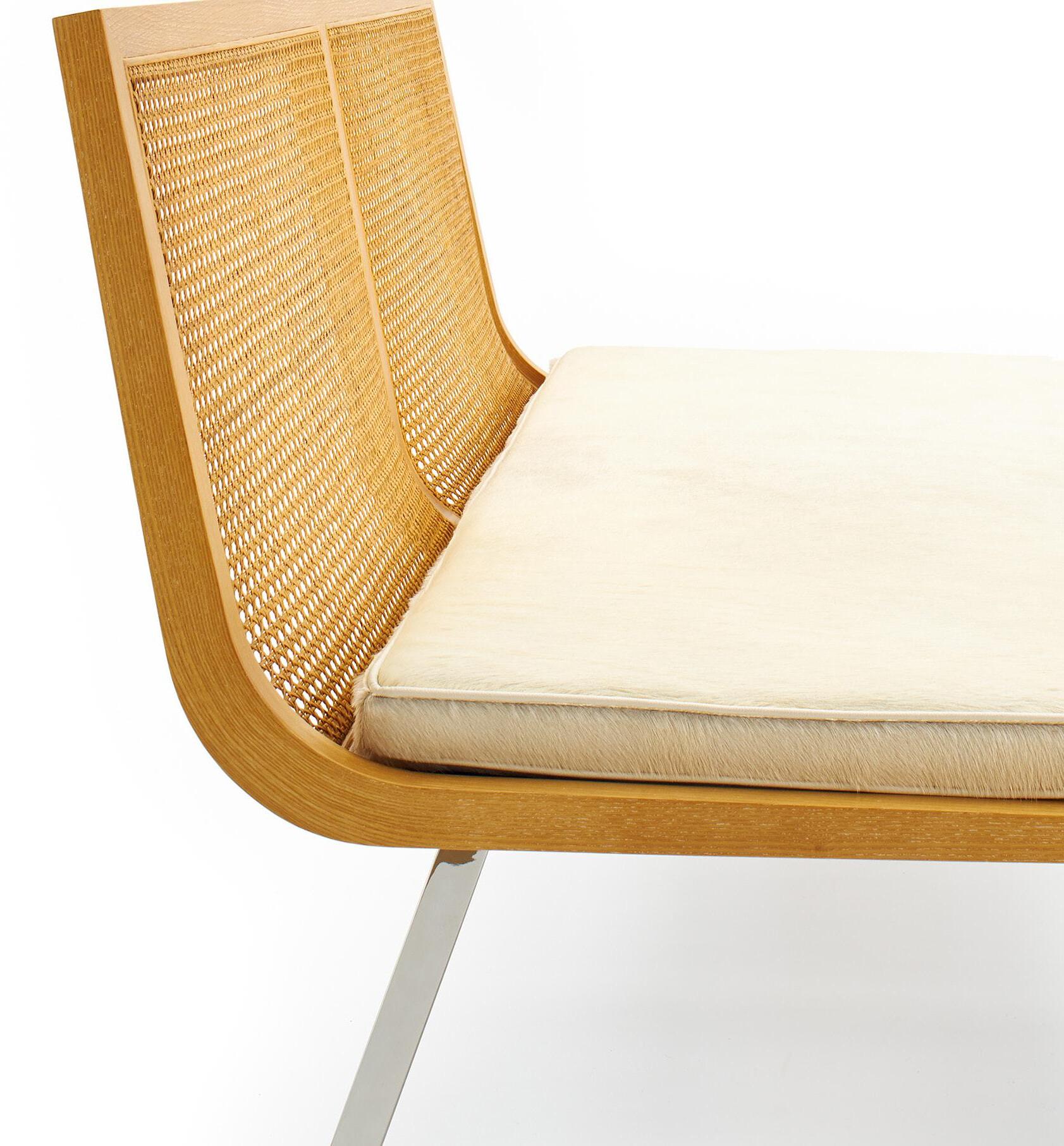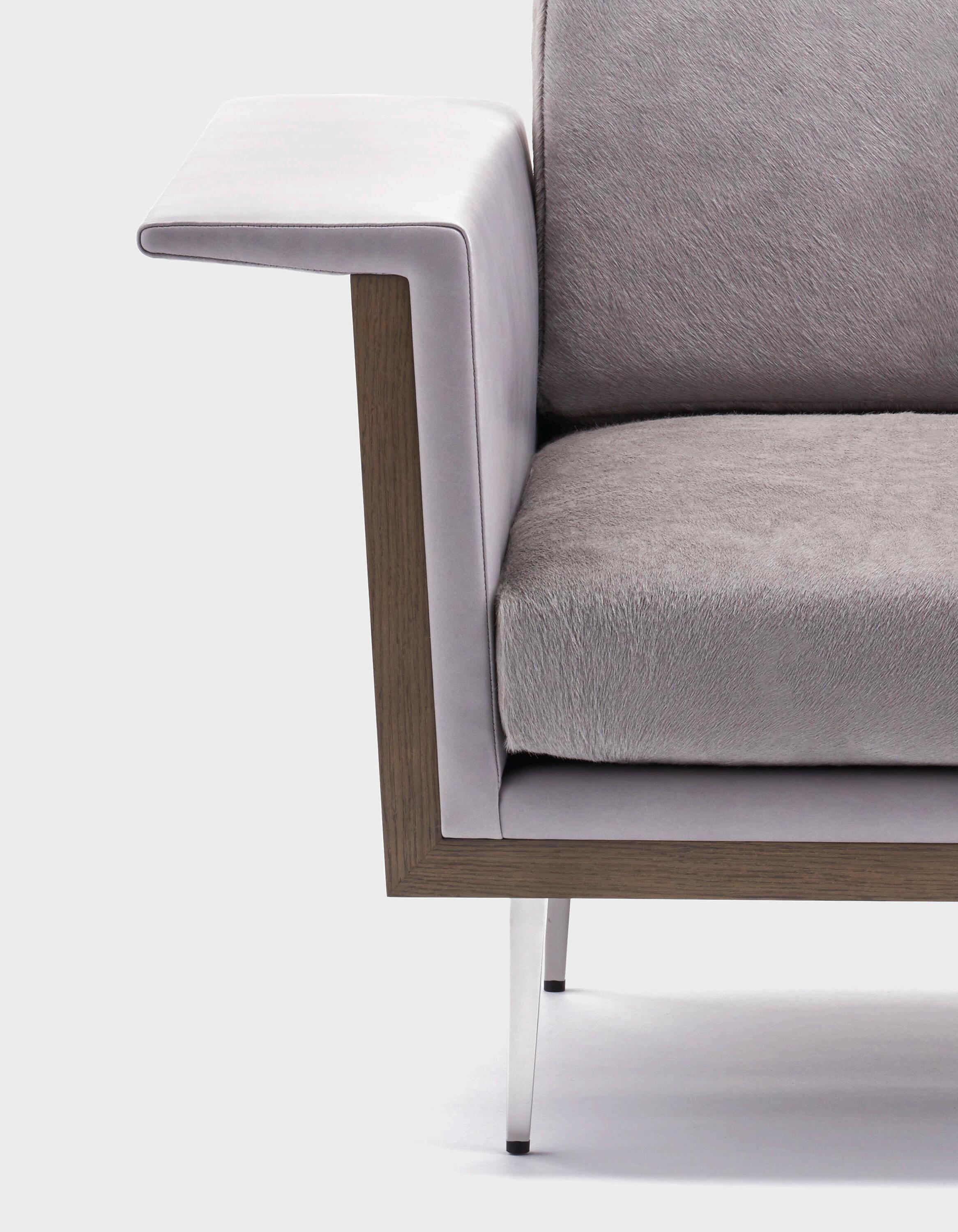 Inspired by the craftsmanship and detail of the George Nelson Montauk House, the Structured Lacquer Chair combines a high gloss lacquer, wood, and is available in a mix of leathers, hides, and furs.