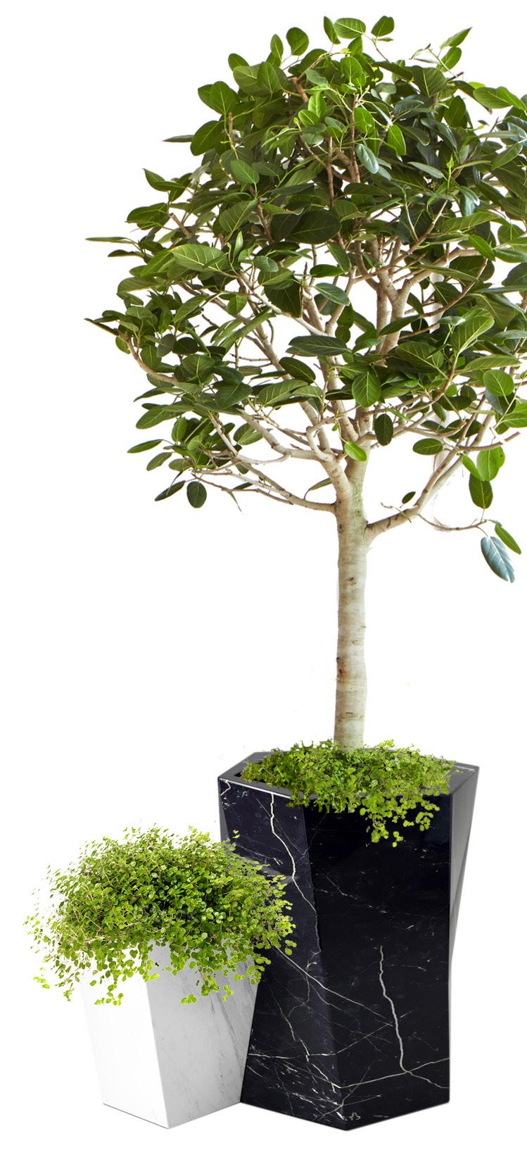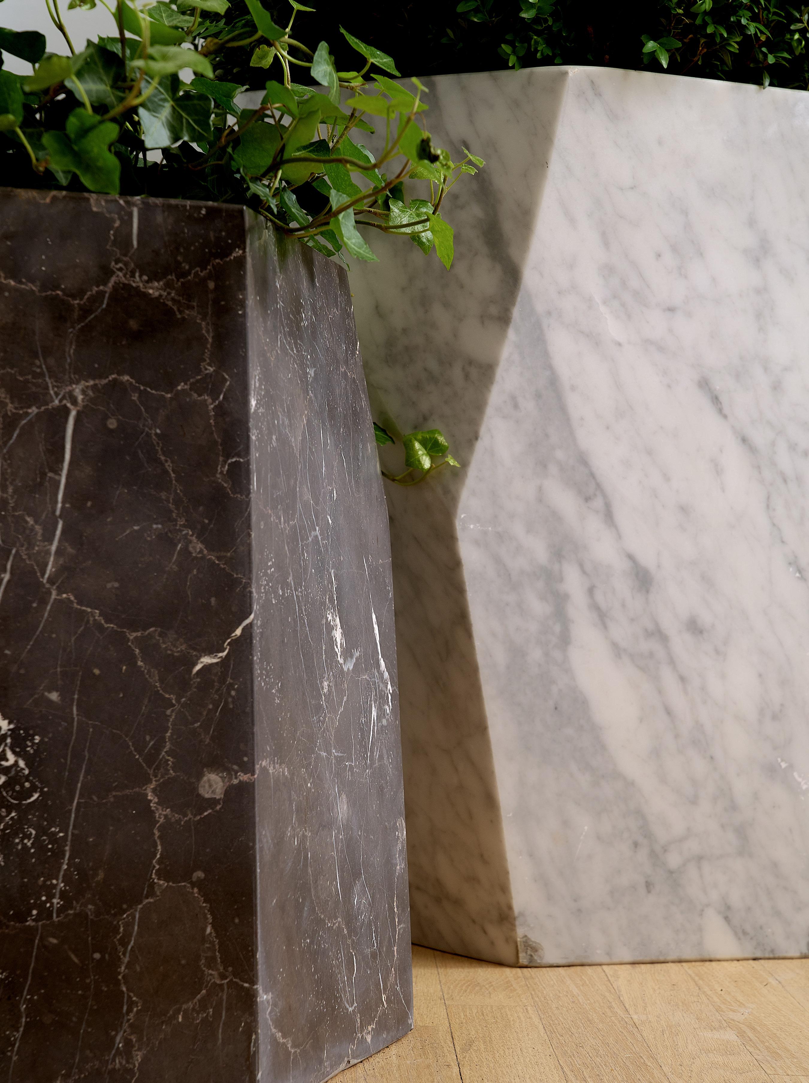 The Scutoid Planters were inspired by the scientific discovery that epithelial cells naturally curve to adopt very beautiful and complex, yet stable geometric shapes known as scutoids, which consist of sheets of similar tissue bound closely together to form larger organic beings. Constructed of solid stone, these planters are remarkably sturdy and intended to bind the connection between the indoor and outdoor experience.