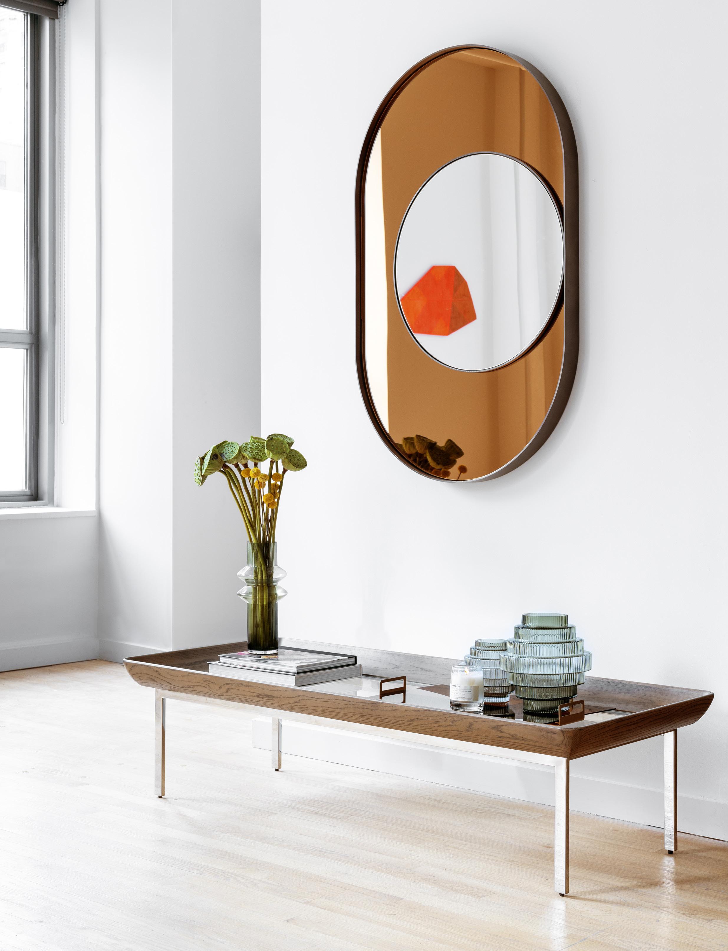 The inspiration behind the Ovo Mirror Collection (Arc, Ellipse and Trapezoid mirrors) was conceived by Lauren’s fascination with early light and space artists who often hid mirrors within their work to manipulate the environment.