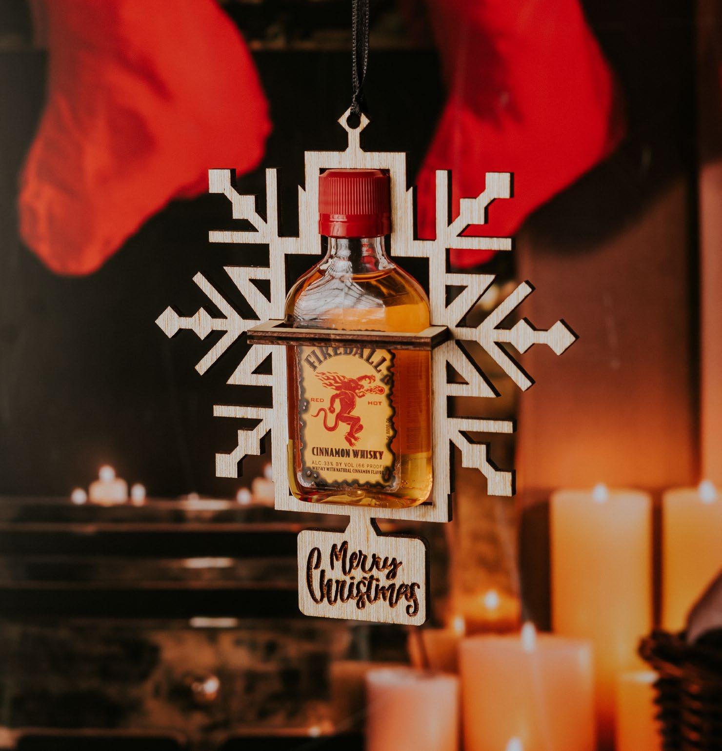 Hecha con material Plywood troquelado con corte láser en medidas de 16x10x23cm ideal para 1/2 de Whisckey y 2 whiskeros