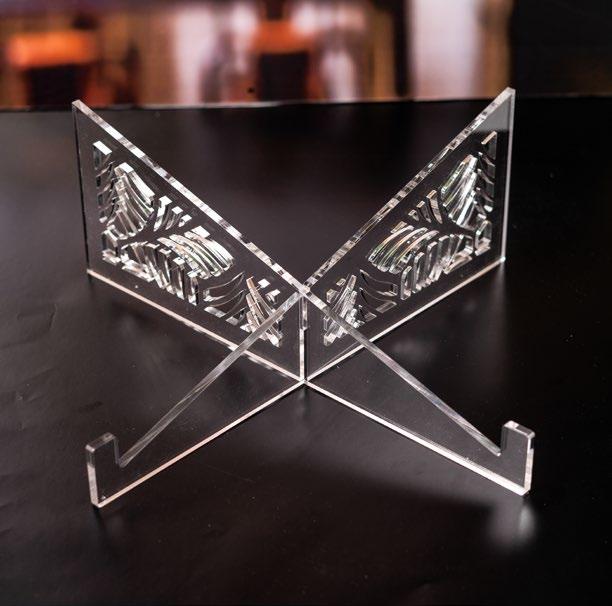 Hecho en acrílico transparente de 5mm troquelado por medio de corte láser en medidas generales de 30x10x20cm