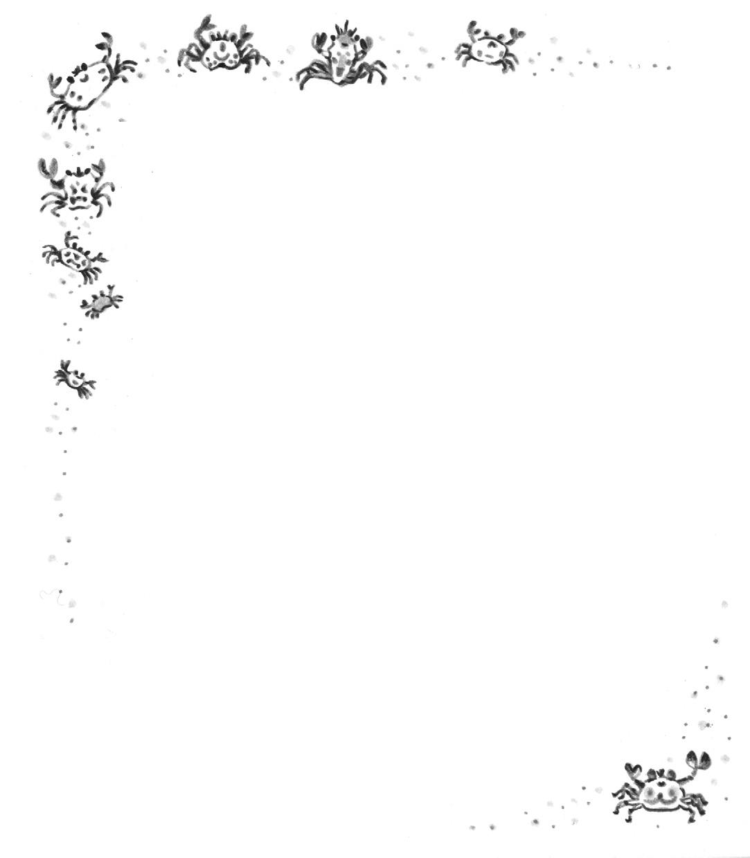 On y va tous les jours. Quand les vagues se retirent, on appelle ça la marée basse. On découvre plein de vie sur le sable et entre les rochers. Il y a des algues de toutes les couleurs. Et aussi des anémones qui ressemblent à des fleurs. Et aussi tout un tas de bestioles qui se cachent dans les trous et sous les cailloux. Par exemple, les crabes. Toutes sortes de crabes. Les jaunes, les noirs, les verts. Les étrilles et les araignées de mer.