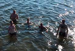 Mødet sluttede omkring kl. 13 hvorefter vi blev kørt i bus ned til stranden, hvor den stod på afslapning og international tabling.