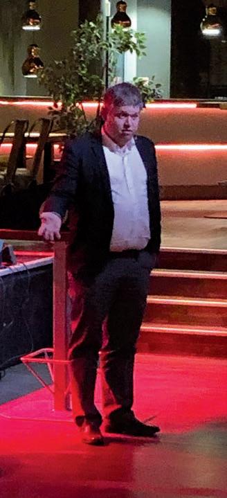 stemme nok til at klare det uden mekanik. Han kunne berette om flere optagelser af klubber, hvor bl.a. Skælskør EXT 2 var iblandt, så der nu er 99 registrerede klubber i Danmark. Også IRO-manden Povl Ålund havde et indslag om hans ”rejsefeber”, og det giver jo også en god mulighed for de unge mennesker, at få venner ude i det fremmede. Vicelandsformanden Michael Bjørn Olsen var også oppe (uden mikrofon) og slå et slag for optagelse af medlemmer til Round Table, for det er her fødekæden til EXtable starter. D´Herer Peter Fjeldsøe fra Randers og Peter Garhøj fra Frederiksborg, begge VLF `aspiranter var begge oppe ved mikrofonen med et indslag, om hvordan det blev, hvis de blev valgt til denne post. Vor formand Jens var næste taler og her kom der lidt frem om vor lille verden, som jo egentlig er ret stor, når vi ser hvad vor klub har gjort. Og man kunne jo passende tilføje at Jens har bidraget til udformningen af dette smukke receptionslokale. Aftenens sidste taler var Anders Tange fra EXT 2 Skælsklør. Han rettede en stor tak til EXT 65 for at sætte scenen i dag, og til Harboe for at stille scenen til rådighed. Det er altid sjovere at have ”været der” end at have ”hørt om det”. Anders Sluttede sin tale af med den opfordring, om at bakke op om jeres RT-klub - den er også vigtig for vores fremtid i EX-table, og vi har stadig noget helt unikt at byde på. Efter dette stilfulde Distriktsmøde sluttede Per Andersen af med en stor TAK til alle fremmødte og ønskede en god hjemfart.