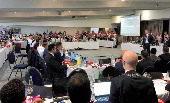 til verdensmødet i Rumænien, hvor Frank Pedersen fra RT47 Kalundborg fik tildelt RTIs Medal of Honor for initiativet ”Endnu en Stjerne”, der resulterede i en donation til Knæk Cancer på ikke mindre end 386.847 kr., og hvor Danmark blev kåret som Association of the Year i NEA-regionen med den flotte motivation ”Year after year they are leaving their mark in the RT world. Taking task and roles that bring our association forward. Often it has been this country we get the very good ideas. We see them in big numbers almost everywhere at our events, the inspire eachother to travel and to enjoy what we do. And in 2 years for the first time ever we will visit them at the RTIWM” og året, hvor vi for første gang inviterede klubbernes arvtagere, Next-In-Lines, med til begge formandsmøder.