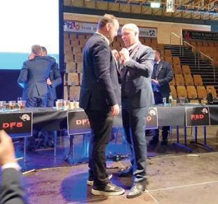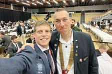 med den første udfordring, da COVID-19 fik indhentet Landsformanden og forhindrede hans deltagelse. Det betød i sin enkelthed, at jeg måtte træde i hans sted og på bedste vis repræsentere Danmark sammen med Patrik. Patrik og jeg gjorde i vanlig stil, hvad vi kunne for hele tiden at styre slagets gang i det internationale spil. Dagene i Marokko gik stærkt, men personligt fik jeg stiftet en masse nye relationer både nationalt (da vi var en stor delegation afsted) og internationalt. For at sætte prikken over i’et gjorde vi os særligt bemærket ved at tage to priser med hjem hhv. TOTY i NEAR regionen og årets klub i NEAR regionen. Stort og velfortjent tillykke til Patrik Broberg og RT130 –Frederiksborg.