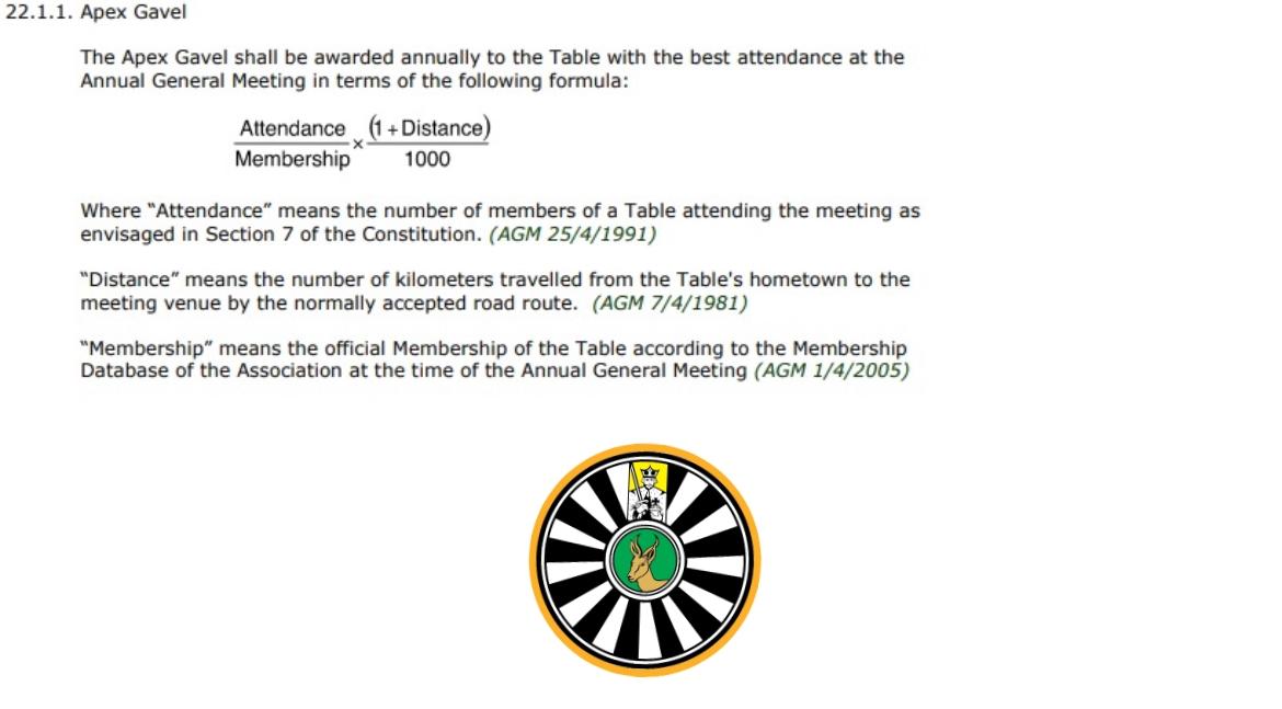 24.7 Apex Gavel for attendance at the Annual General Meeting