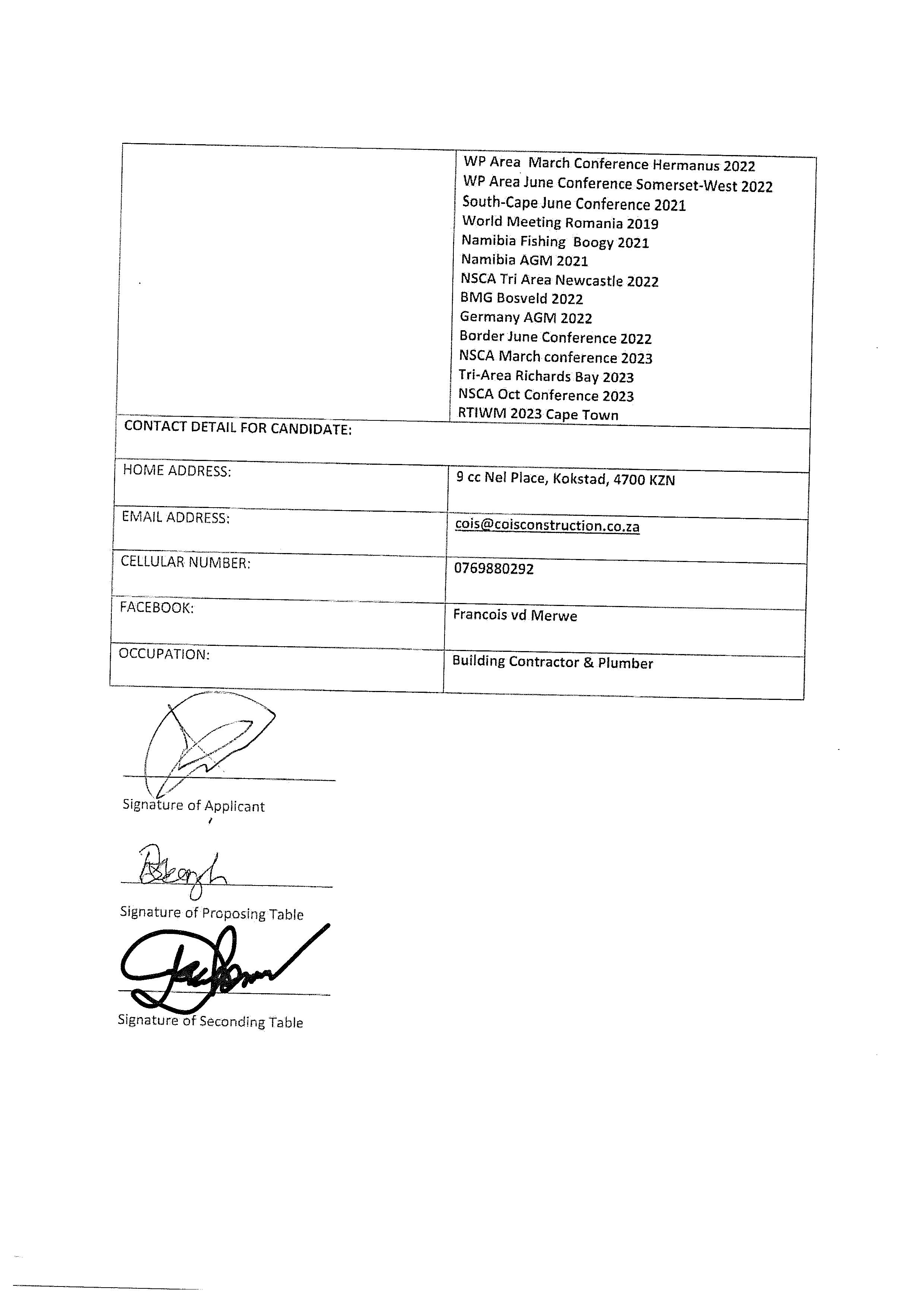 The following form is to be completed and you are entitled to attach any additional documentation in motivation, such as PowerPoint, videos and pictures.